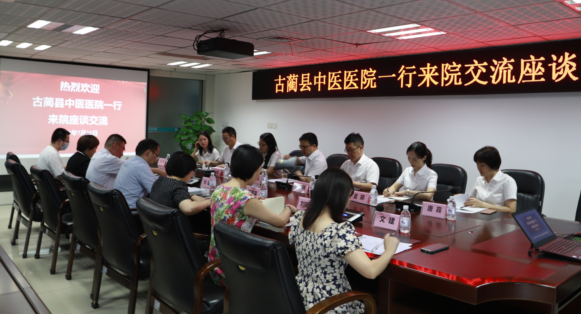 2022年7月22日,古蔺县中医医院党委书记陈锐一行来院交流,我院院长刘建、副院长徐厚平及相关职能部门负责人参加了会议。会议由徐厚平主持。