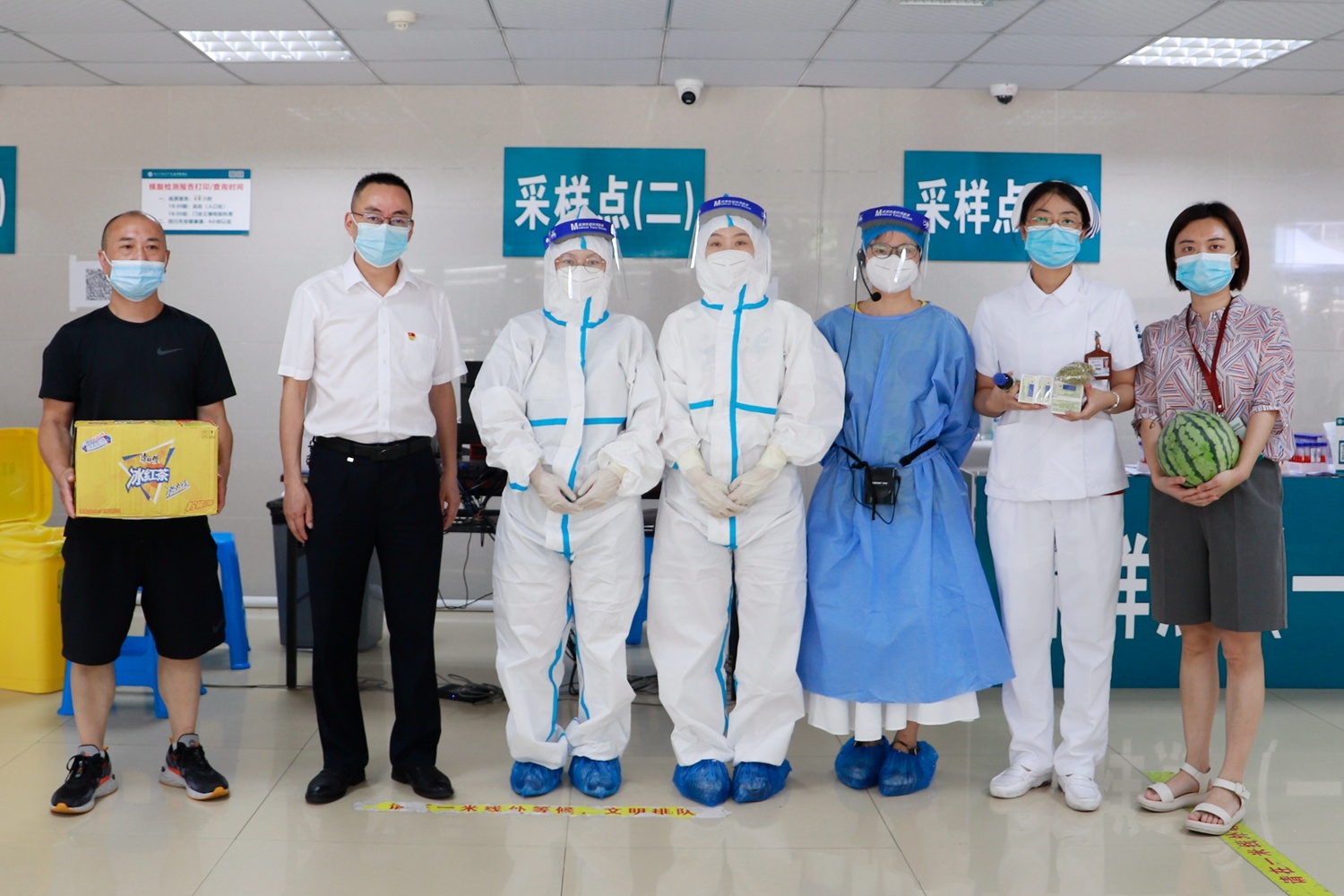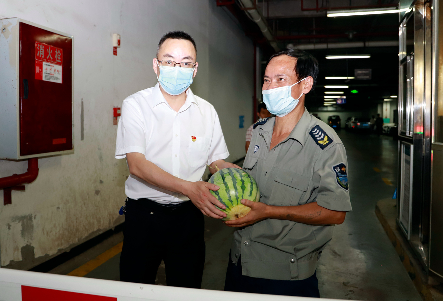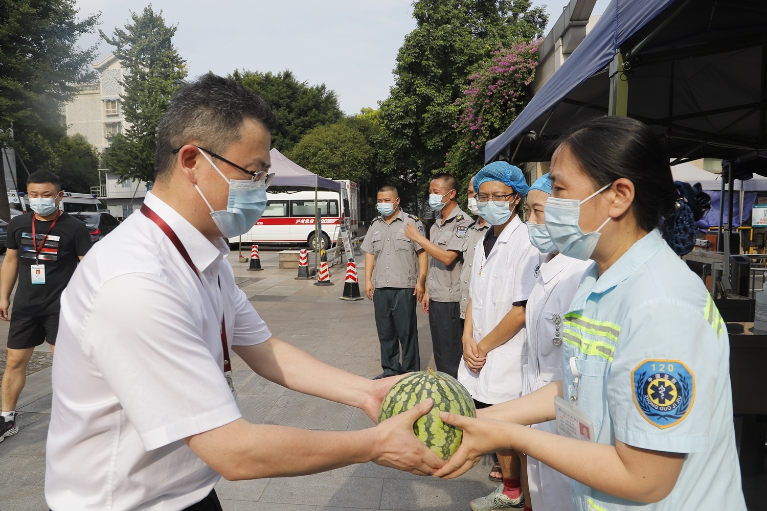 2022年7月11-12日,我院党委书记李志、院长刘建等院领导带领相关职能部门人员分别看望了城北院区、忠山院区和水井沟院区在高温下坚守岗位的一线员工代表,为他们送去了防暑降温物品。