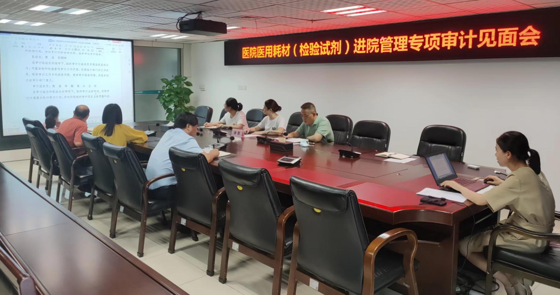 2022年7月5日,我院召开医用耗材(检验试剂)进院管理专项审计见面会,党委副书记、纪委书记徐茜,审计组成员、设备保障部及检验科负责人、经办人员参加了会议。会议由审计部部长黄浩主持。