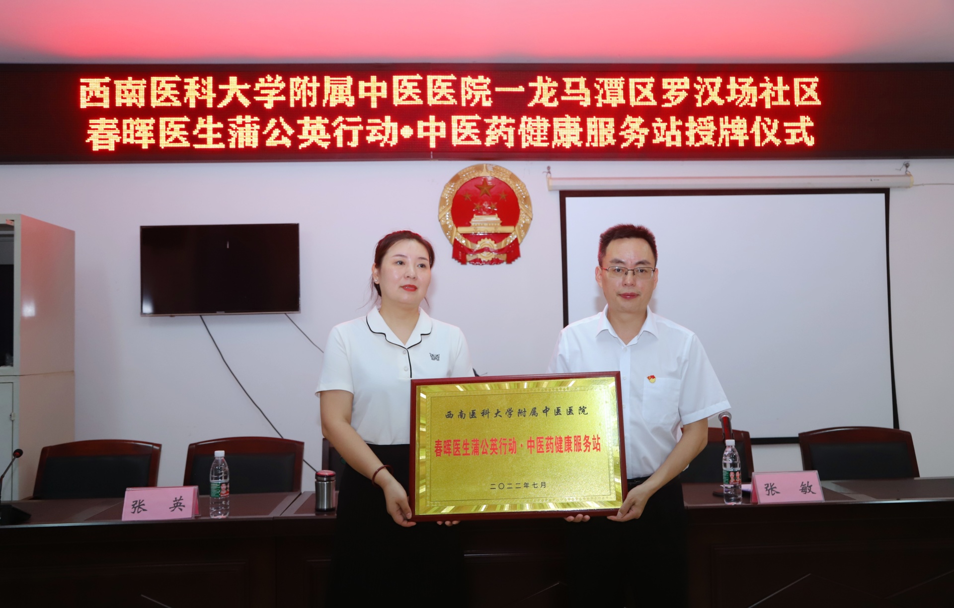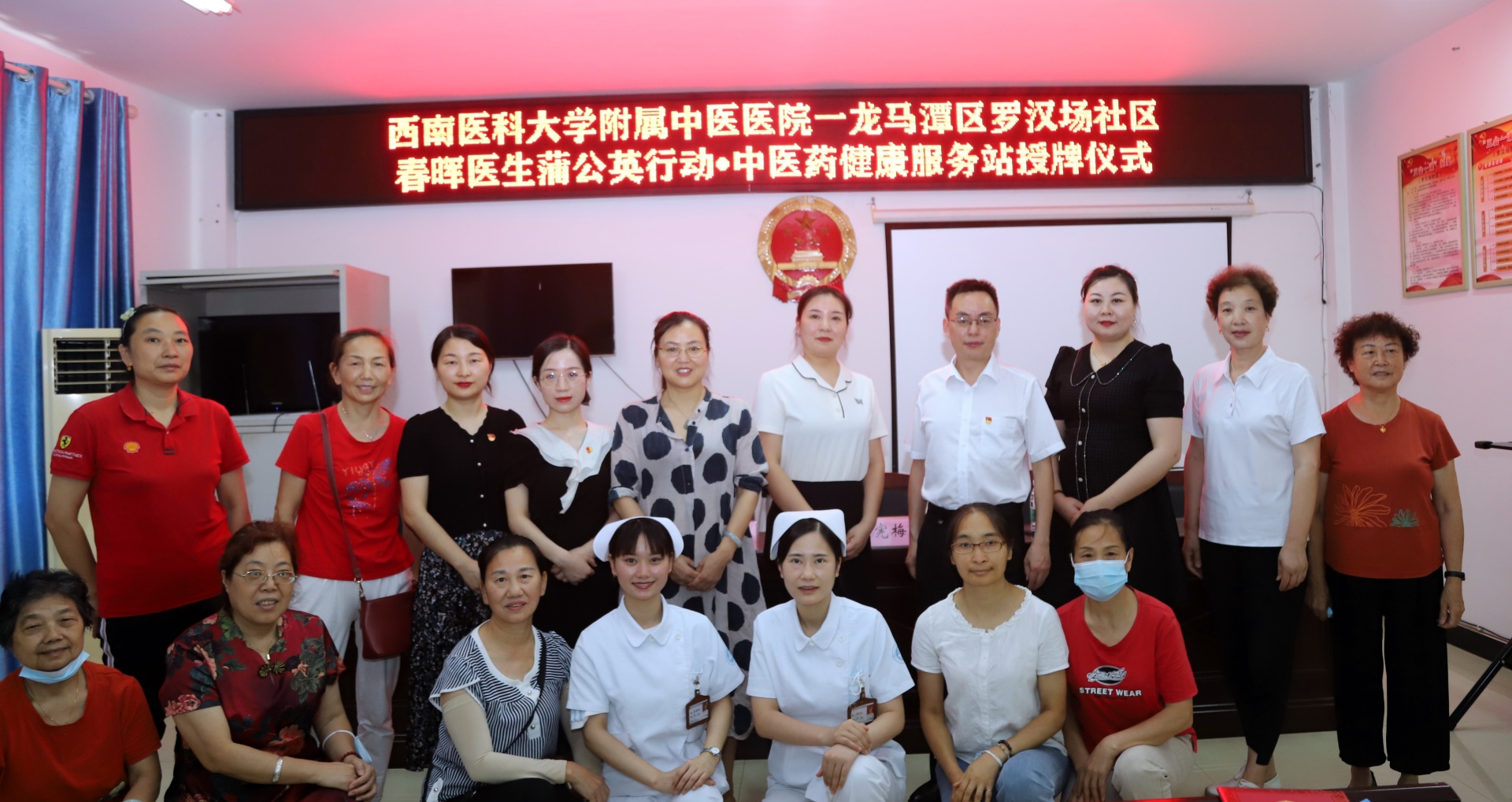2022年7月7日,我院疼痛科党支部、宣传统战党支部与龙马潭区罗汉场社区党委举行了春晖医生蒲公英行动·中医药健康服务站授牌仪式,医院党委副书记雷学举,罗汉场社区党委书记黄宪梅及我院相关党支部医务人员、社区相关人员等参加了仪式。