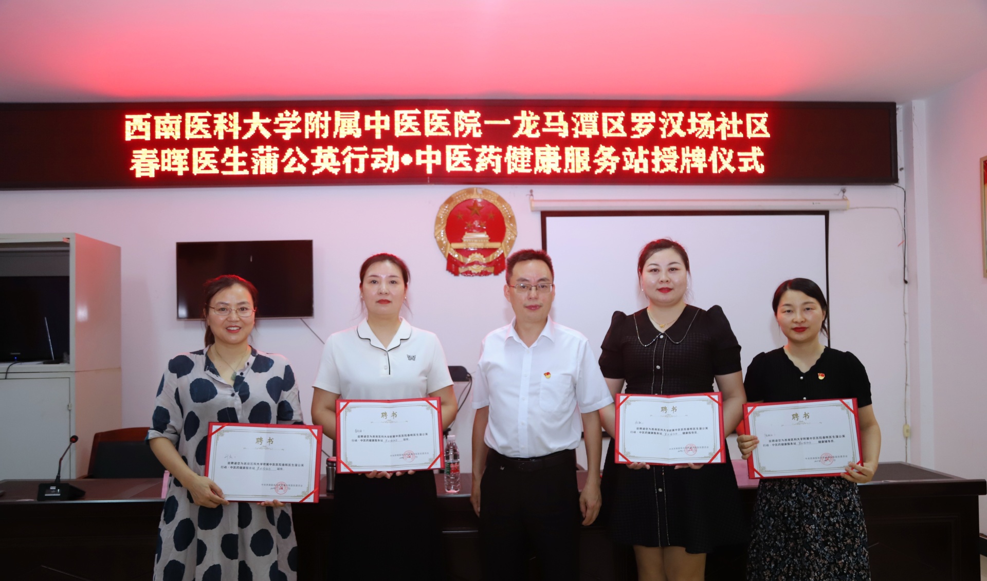 随后,雷学举代表医院向罗汉场社区授予“春晖医生蒲公英行动·中医药健康服务站”牌匾,并向相关人员颁发了服务站站长、健康指导员和健康辅导员聘书。