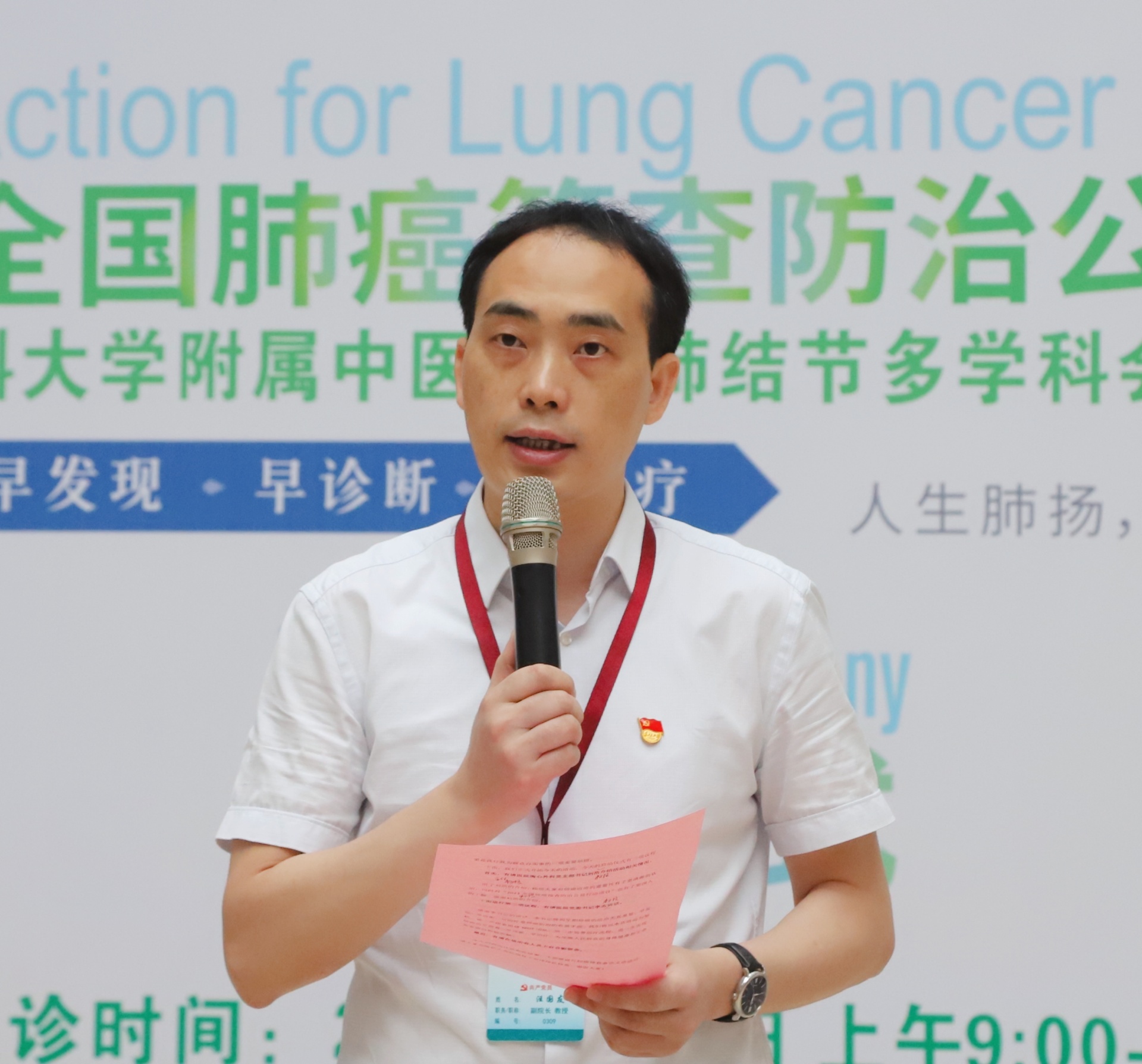 李志讲话,他介绍了医院基本情况,要求相关科室以此次活动为契机,充分发挥科室的特色优势,认真有效开展肺癌高危人群的健康筛查,进一步提高肺癌患者的生存率和生活质量,为广大群众健康保驾护航。