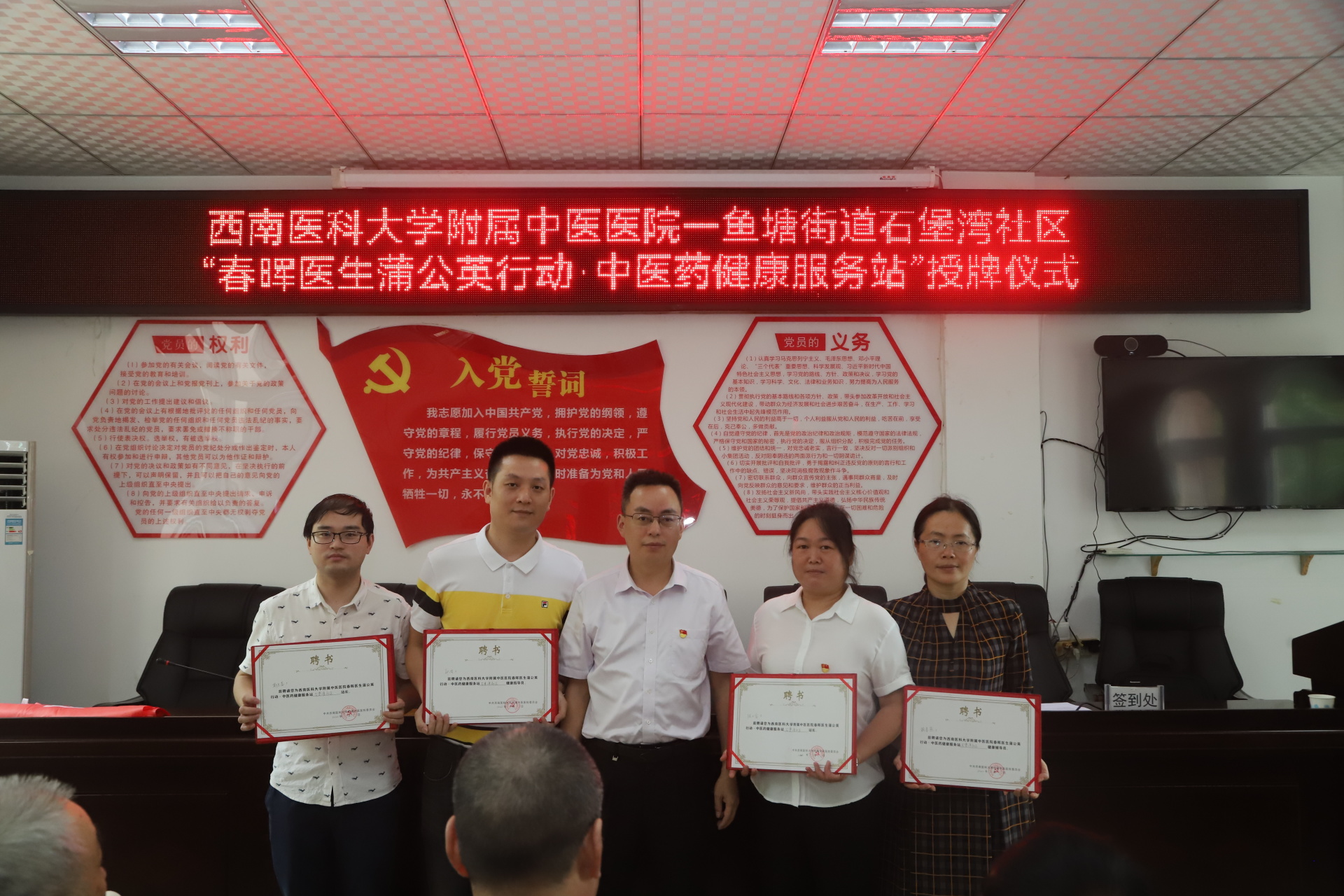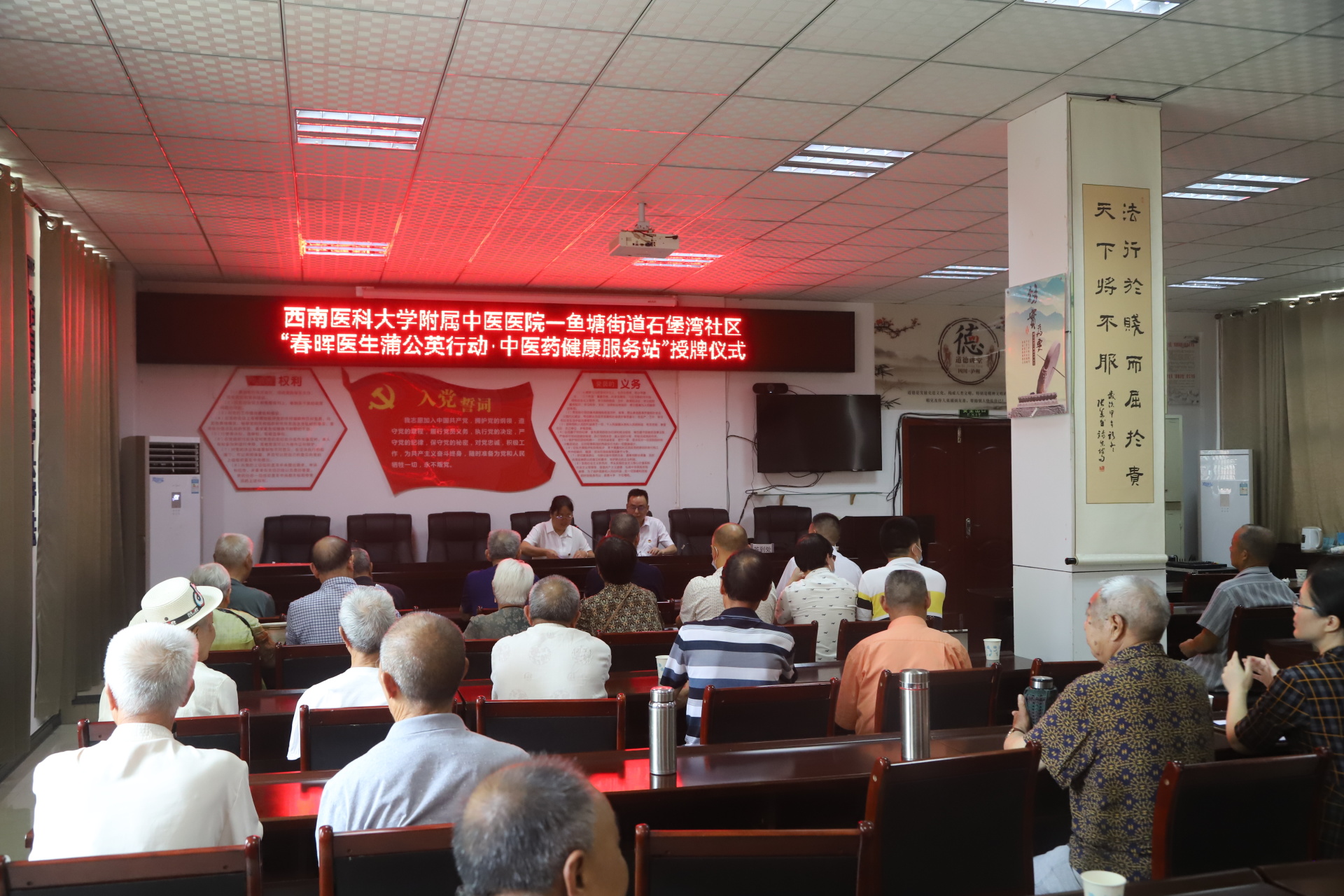 仪式上,张小容介绍了石堡湾社区的基本情况。雷学举代表医院向石堡湾社区授予“春晖医生蒲公英行动·中医药健康服务站”牌匾,并向相关人员颁发了站长、健康指导员及健康辅导员证书。