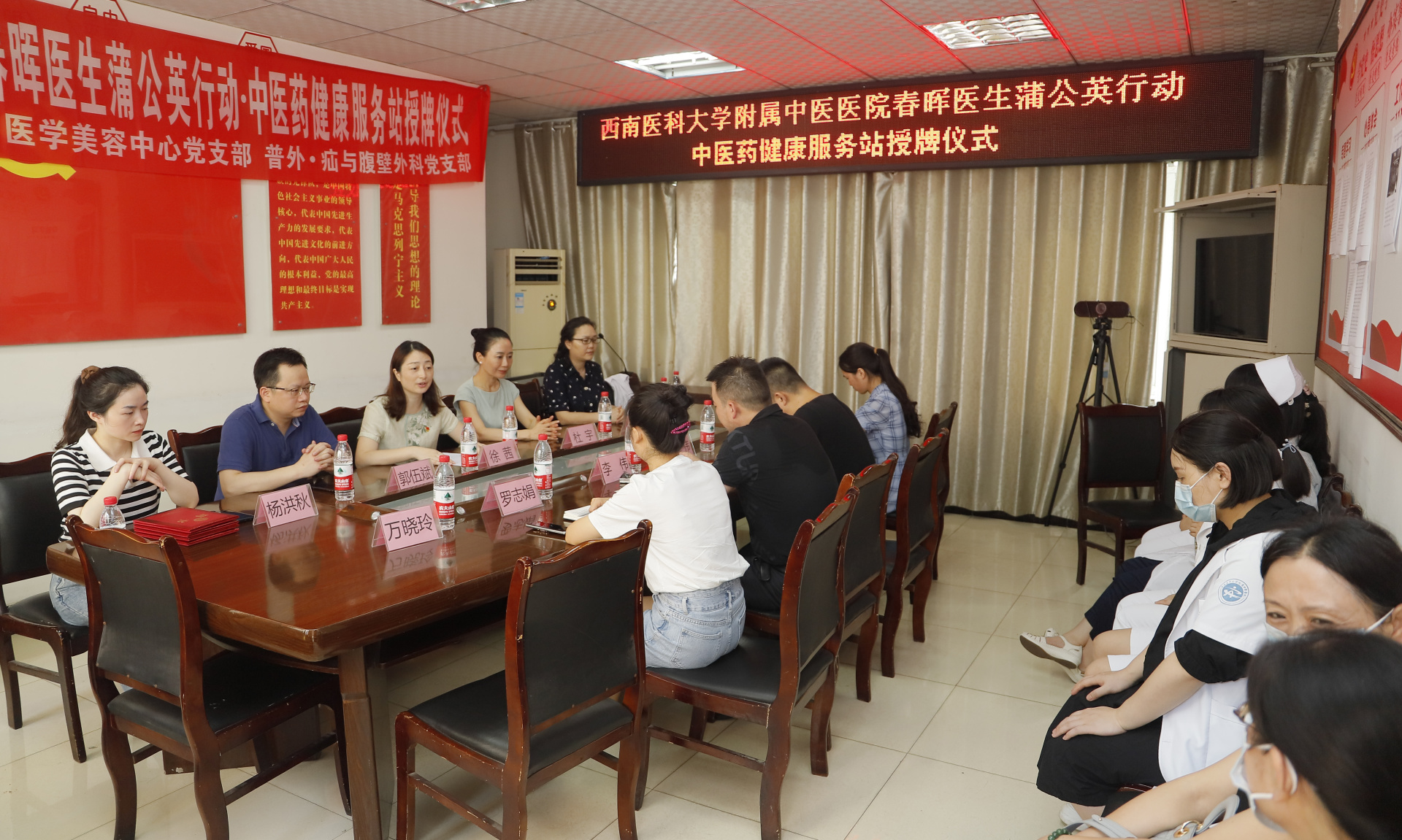 7月1日,我院医学美容中心党支部、普外·疝与腹壁外科党支部与泸州市龙马潭区红星社区党委举行了春晖医生蒲公英行动·中医药健康服务站授牌仪式,医院党委副书记、纪委书记徐茜,龙马潭区红星社区党委书记李伟、党委副书记郑伟及我院相关党支部医务人员、社区相关人员等参加了仪式。