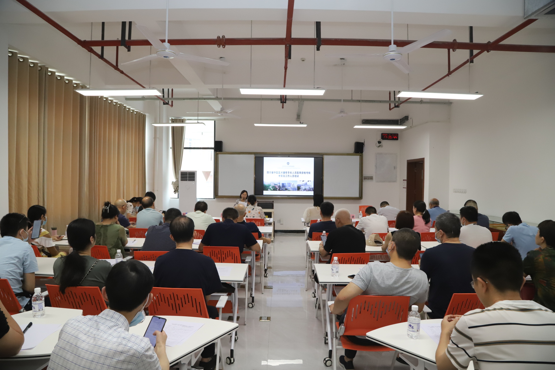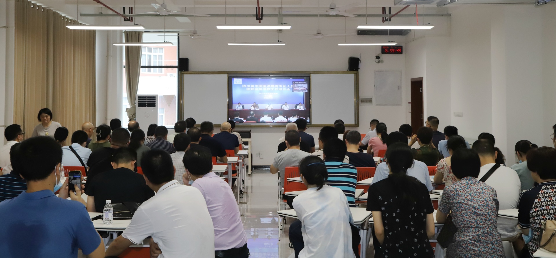 四川省中医药管理局医政处,四川省中医药发展服务中心,泸州市、内江市、遂宁市、自贡市、乐山市、眉山市、宜宾市等市卫健委相关领导及我院院长刘建参会,72名考官参加了培训。