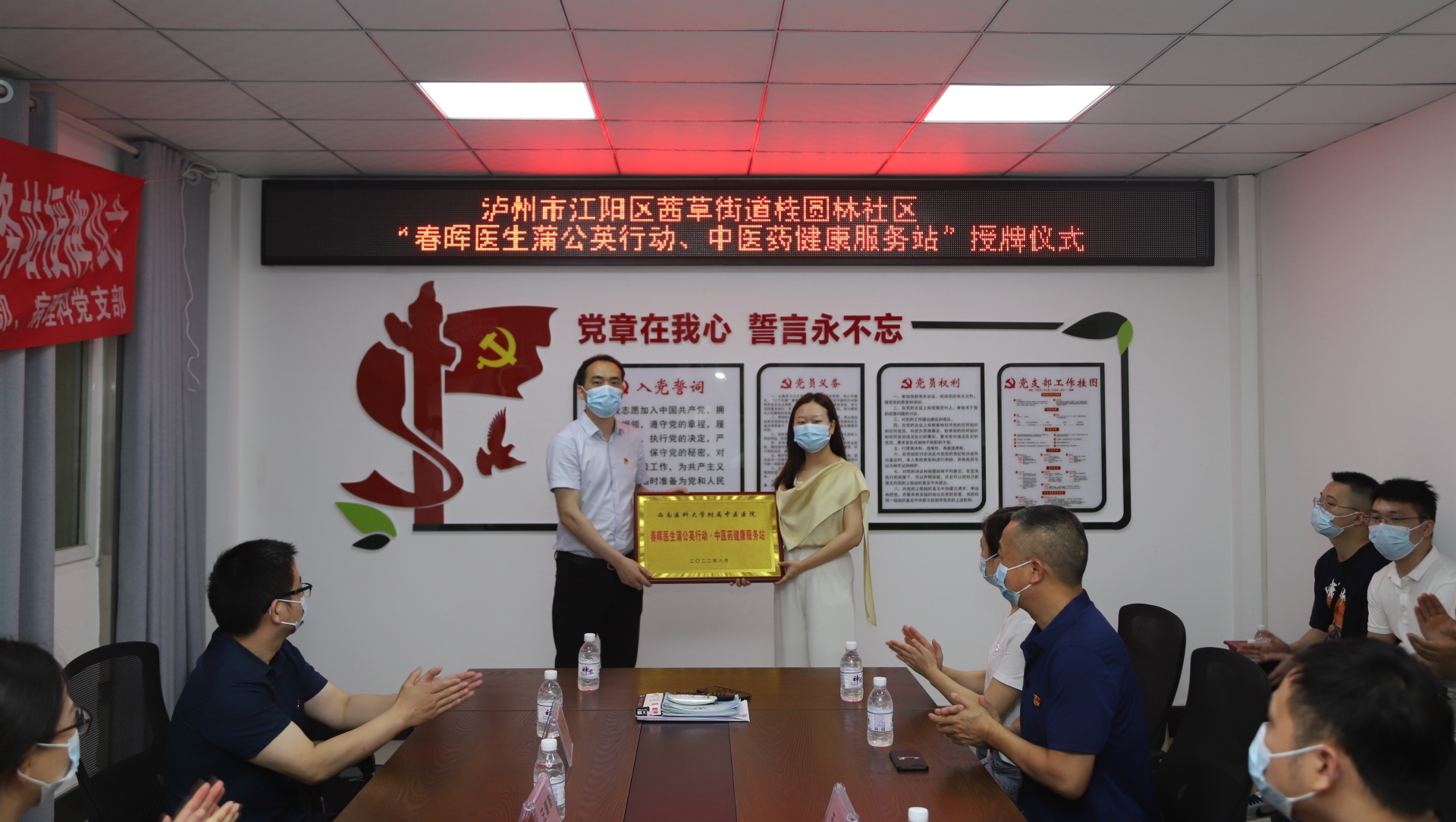 6月23日,我院骨伤科脊柱·肿瘤一党支部、病理科党支部与泸州市江阳区桂圆林社区举行了春晖医生蒲公英行动·中医药健康服务站授牌仪式,医院副院长汪国友,桂圆林社区党委副书记王凤及我院相关党支部人员等参加了仪式。仪式由王凤主持。