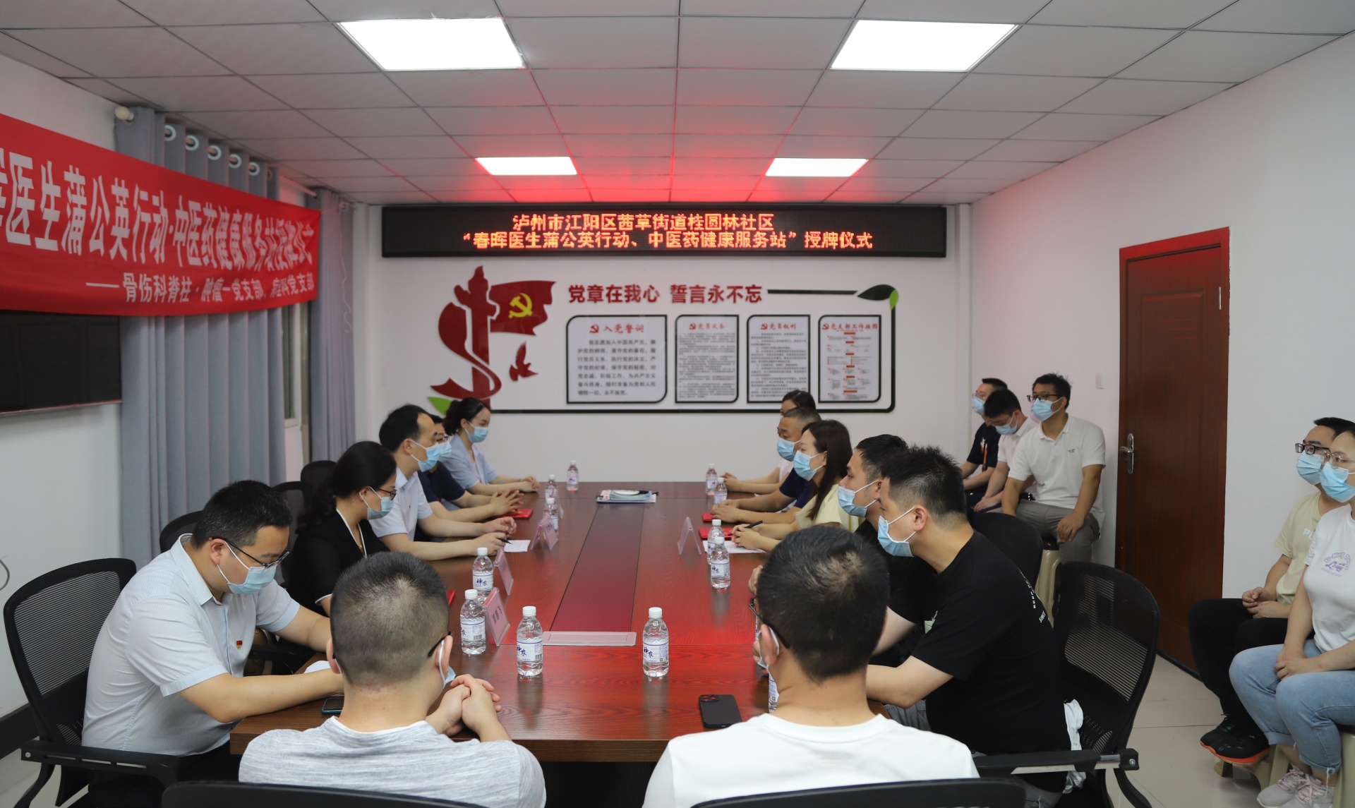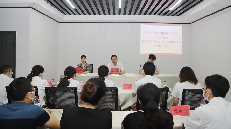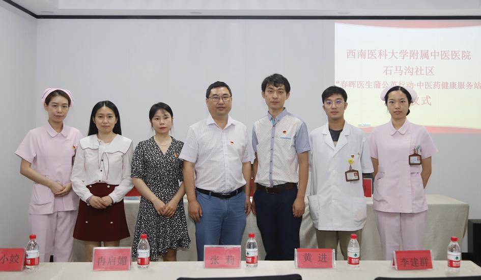 2022年6月23日,我院水井沟急诊科党支部、水井沟门诊党支部与泸州市江阳区石马沟社区举行了春晖医生蒲公英行动·中医药健康服务站授牌仪式,医院副院长张建堂,石马沟社区党委书记黄科及支部、社区相关人员参加了仪式。