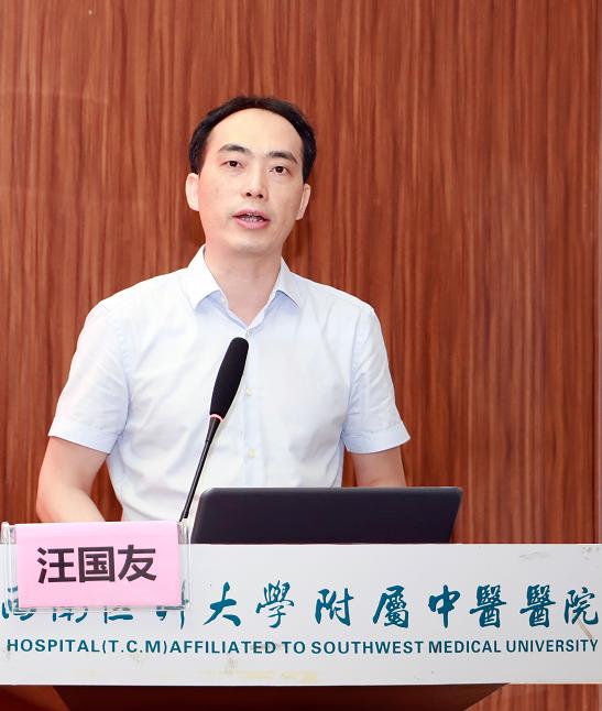 汪国友讲话,他介绍了中医护理质控中心建设情况,表示我院坚持以服务群众为目的,以医疗护理质量为核心,不断提升中医护理团队的服务能力,不断加强多学科交流,共同推动我市中医护理事业高质量发展。