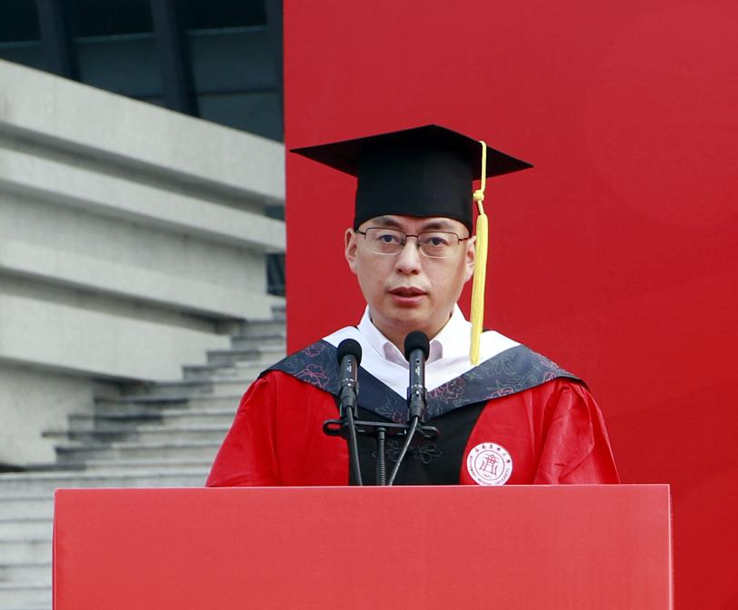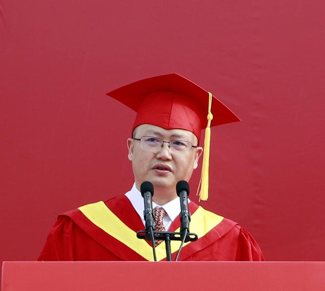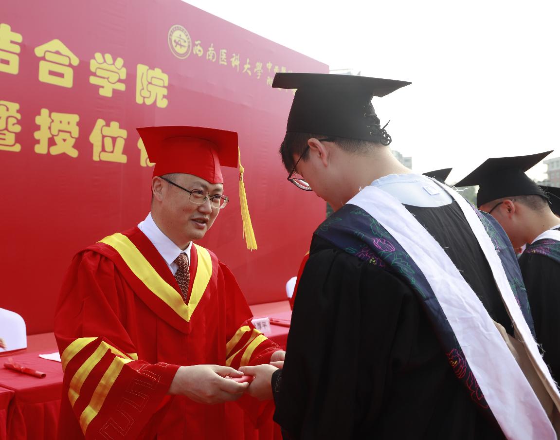 刘建讲话,他代表中西医结合学院为即将开启新征程的毕业生们送上殷殷嘱托,希望他们养天地大气、怀仁爱之心、显大医风骨,秉承西南医科大学“厚德精业 仁爱济世”的校训,履行“仁和精诚 佑护生命”的使命,胸怀祖国,做“国之大者”的有为青年;持之以恒,做“德之厚者”的白衣战士;勤学善思,做“学之乐者”的快乐一代,投身到传承中医、振兴中医、发展中医的热潮中去。