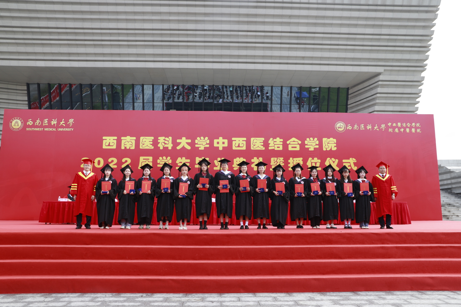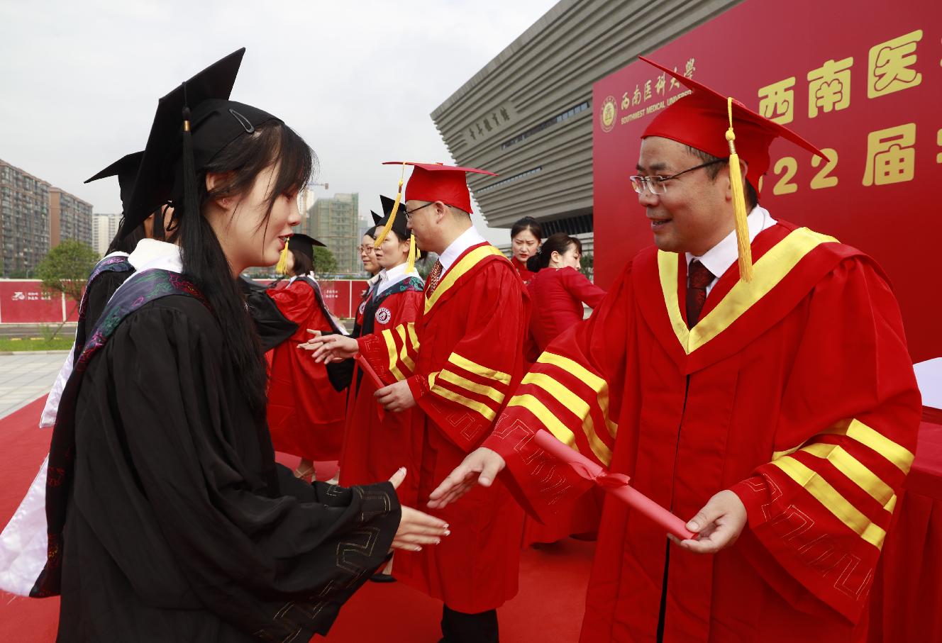2022年6月24日,西南医科大学中西医结合学院2022届学生毕业典礼暨授位仪式在城北校区青年体育馆门前广场举行,学校党委书记廖斌,党委副书记、校长张春祥,学院党委书记李志、院长刘建等领导,学位分委员会委员,教师代表及2022届全体毕业生参加了毕业典礼。毕业典礼由李志主持。