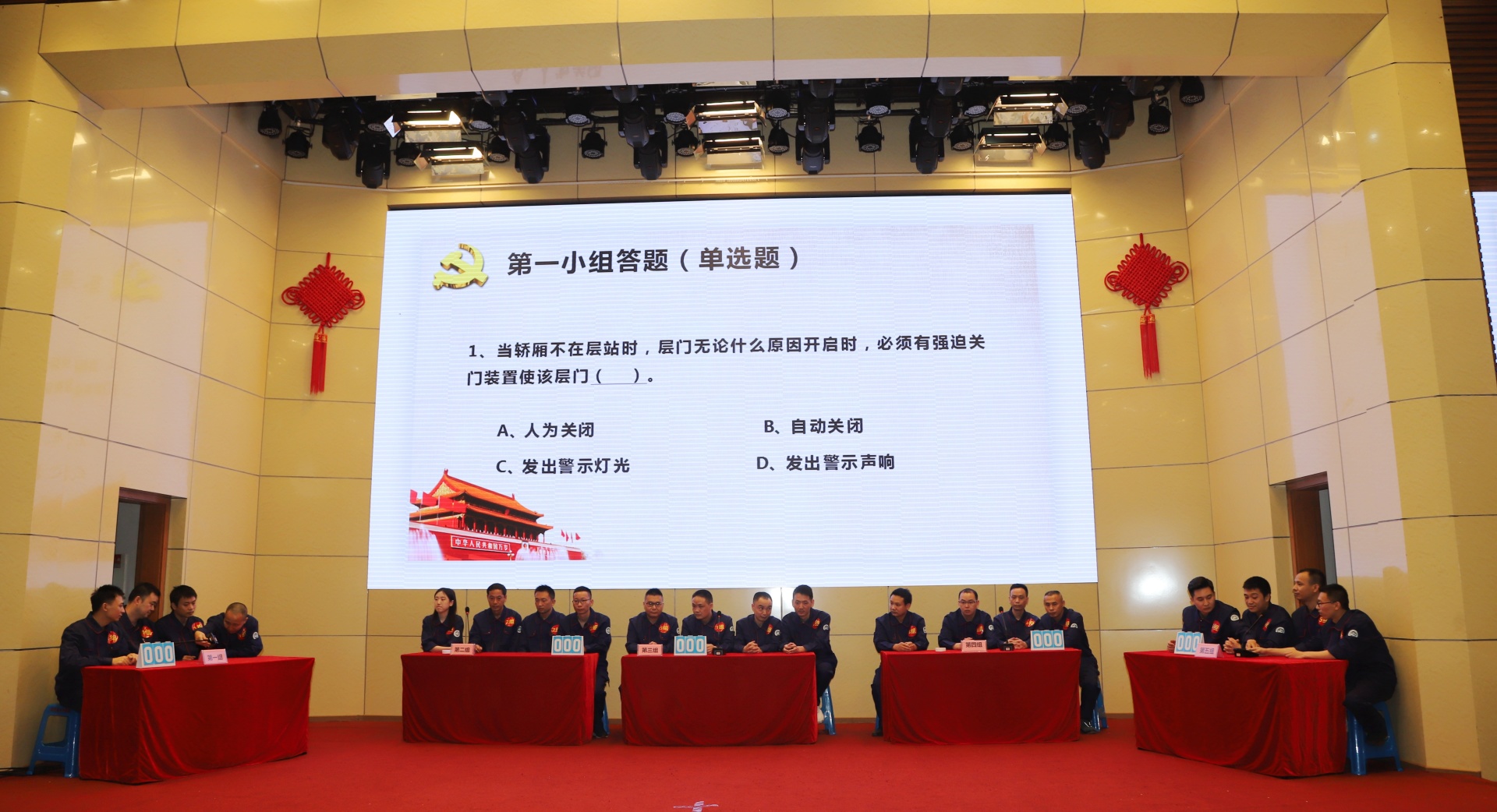随后,后勤基建党支部、设备采购国资党支部表演了开场舞《时代感》。参赛选手分组轮流答题,并进行了技能实操竞赛,最终评选出一、二、三等奖以及道德风尚奖和最佳组织奖。