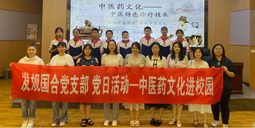 6月17日,我院发规国合党支部全体党员赴泸州市纳溪中学开展了“中医药进校园”活动。杨露银、毛西彦作了《中医药文化——中医特色诊疗技术》讲座,刘薇、贾渴冉、何汶璐进行了中医功法八段锦展示,刘薇介绍了泸州市非物质文化遗产“宋氏揪痧法”。