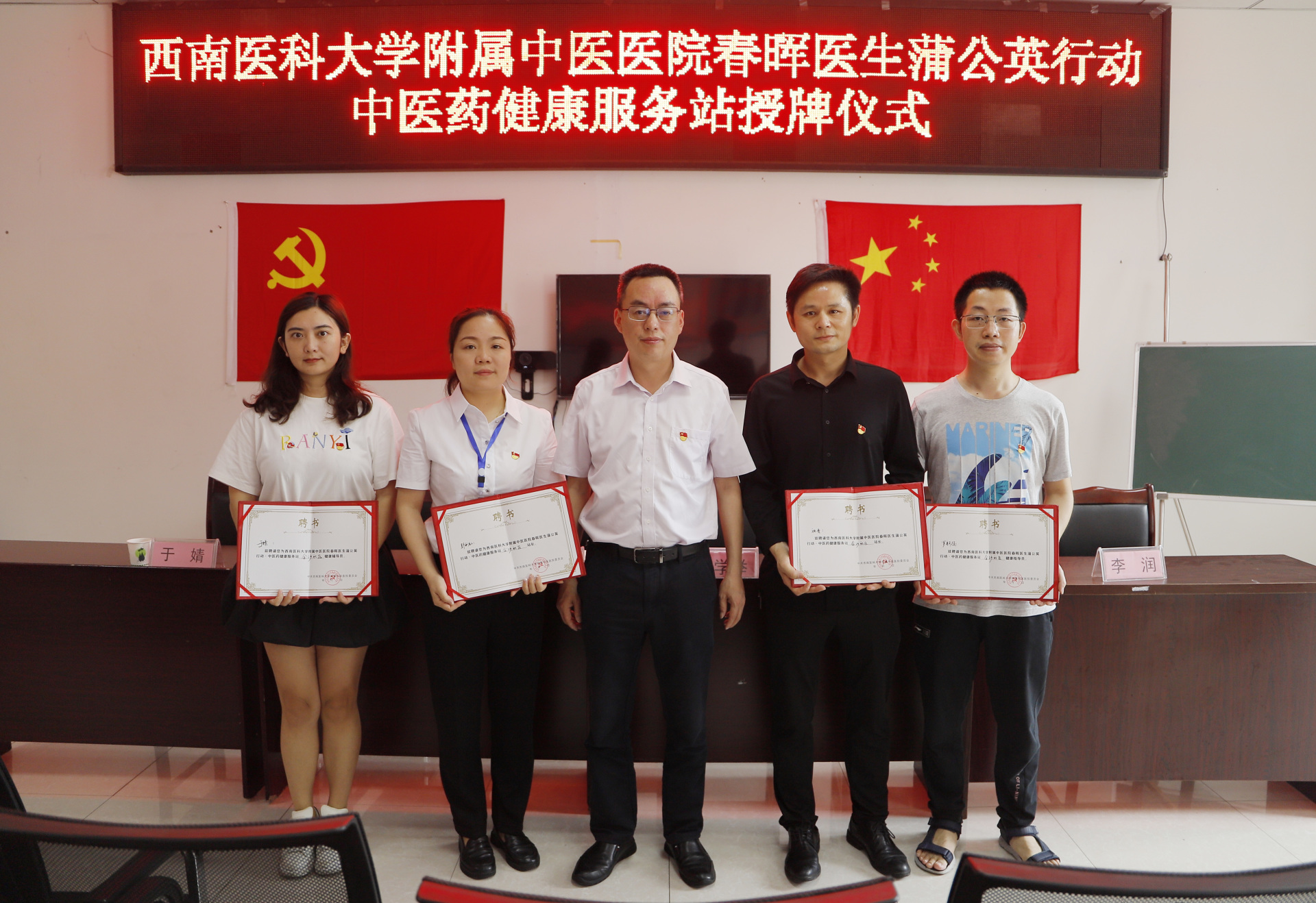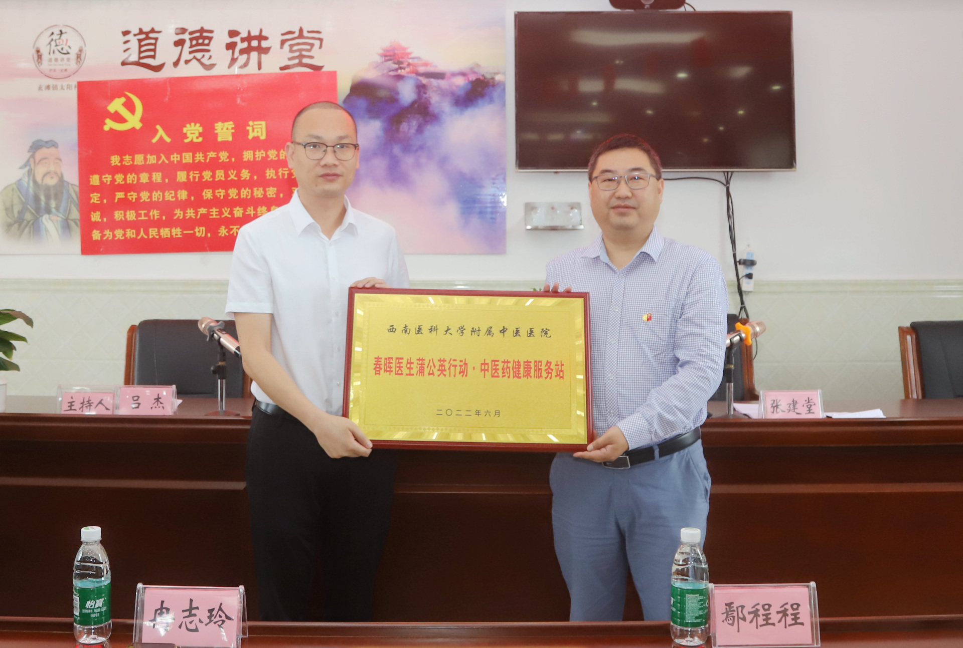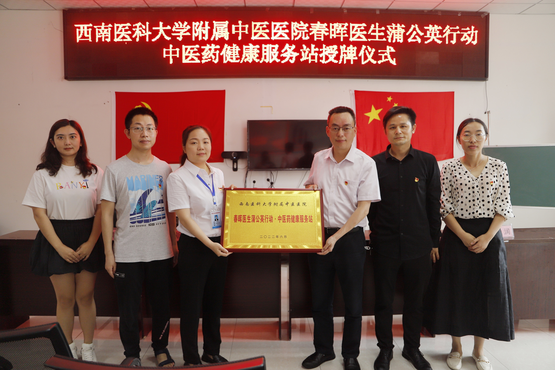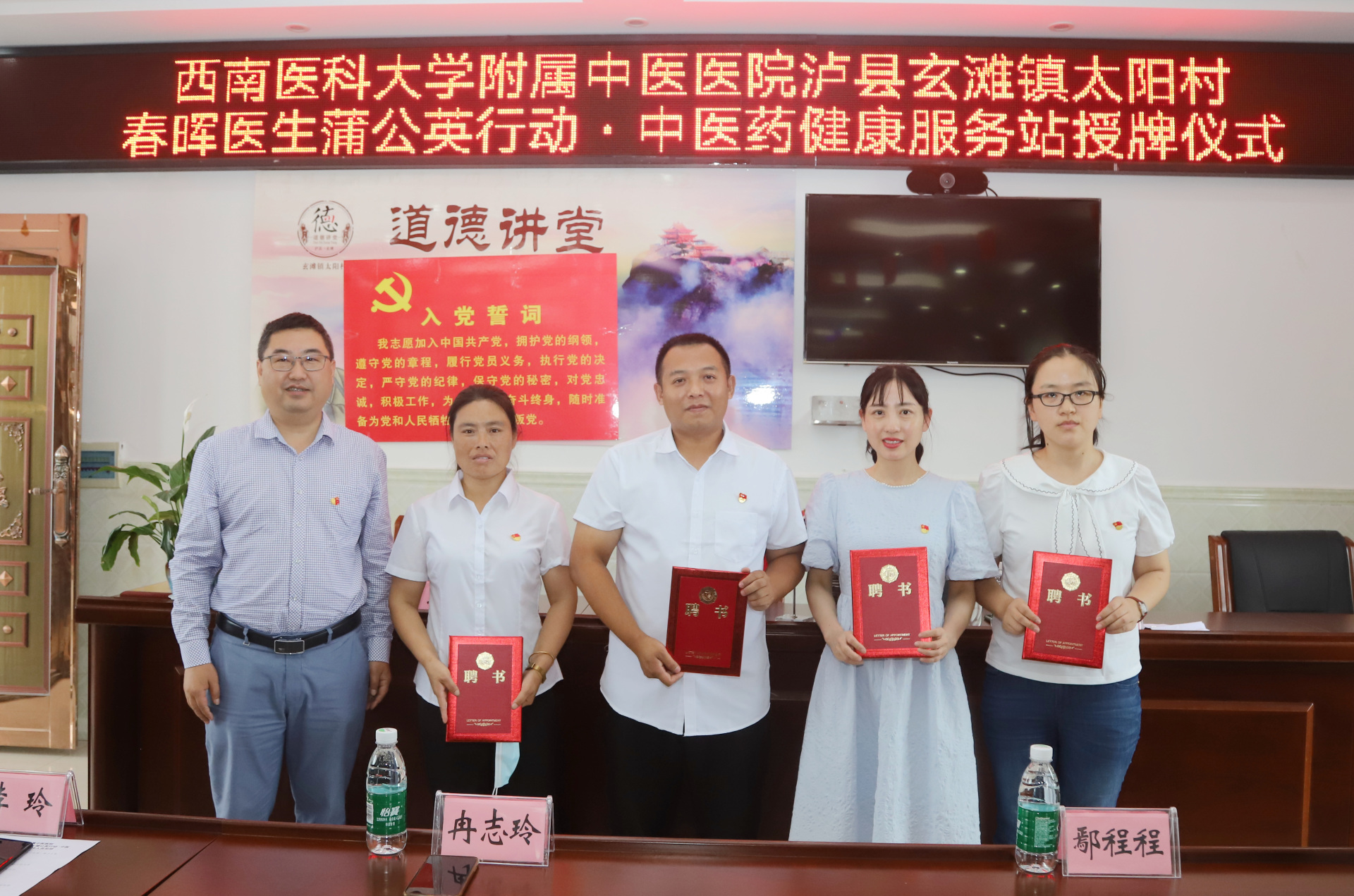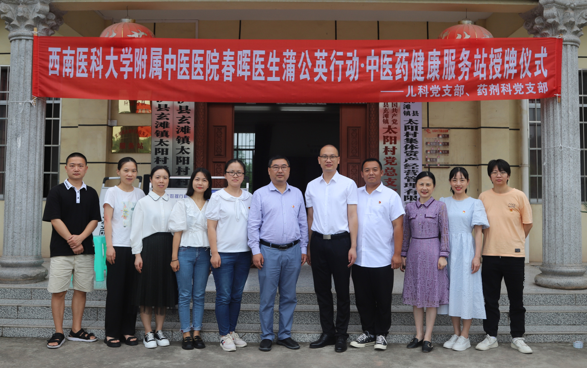 6月10日,我院儿科党支部、药剂科党支部与泸州市泸县玄滩镇太阳村举行了春晖医生蒲公英行动·中医药健康服务站授牌仪式。我院副院长张建堂,玄滩镇党委副书记余前良,太阳村党支部书记吕杰以及支部、太阳村相关人员参加了仪式。