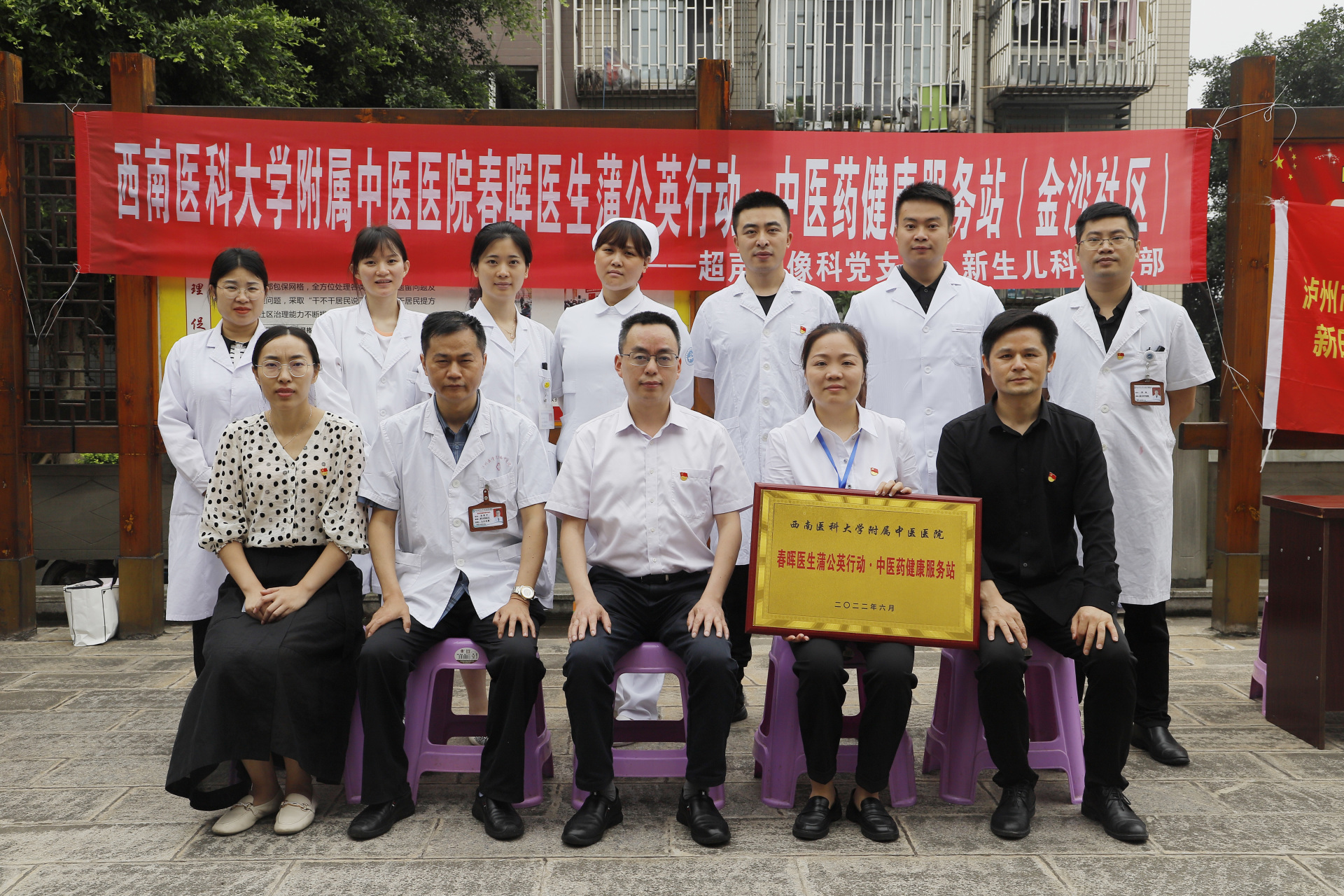 2022年6月10日,我院超声影像科党支部、新生儿科党支部与泸州市江阳区茜草街道金沙社区举行了春晖医生蒲公英行动·中医药健康服务站授牌仪式。医院党委副书记雷学举,金沙社区党委书记彭利红及我院相关党支部医务人员等参加了仪式。