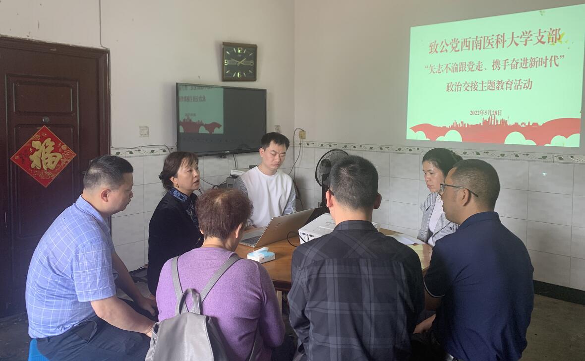 2022年5月28日,致公党西南医科大学支部开展了“矢志不渝跟党走、携手奋进新时代”政治交接主题教育活动,致公党四川省副主委、致公党泸州市委主委、泸州市政协副主席马宗慧及支部相关成员参加了活动。