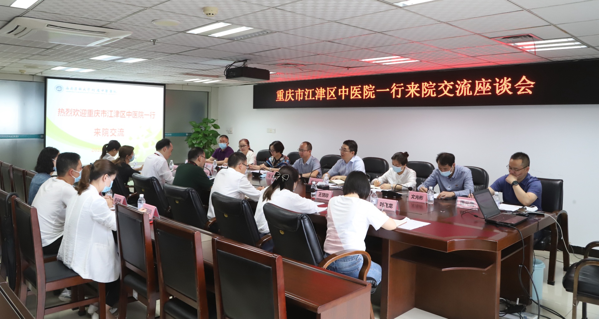 2022年5月25日,重庆市江津区中医院副院长刁鹏、魏东华一行来院交流,我院院长刘建、副院长汪国友及相关职能部门人员参加了会议。会议由汪国友主持。