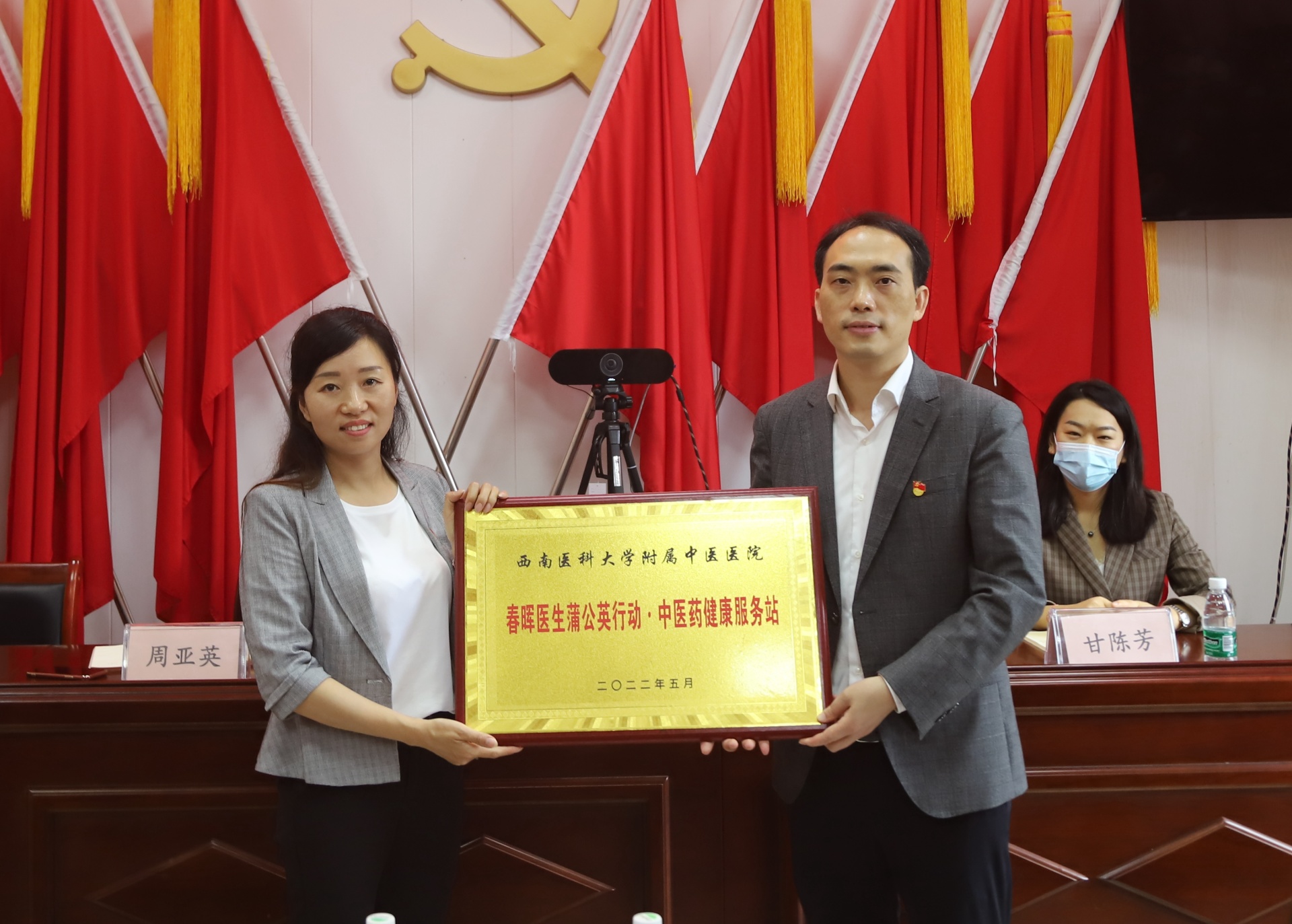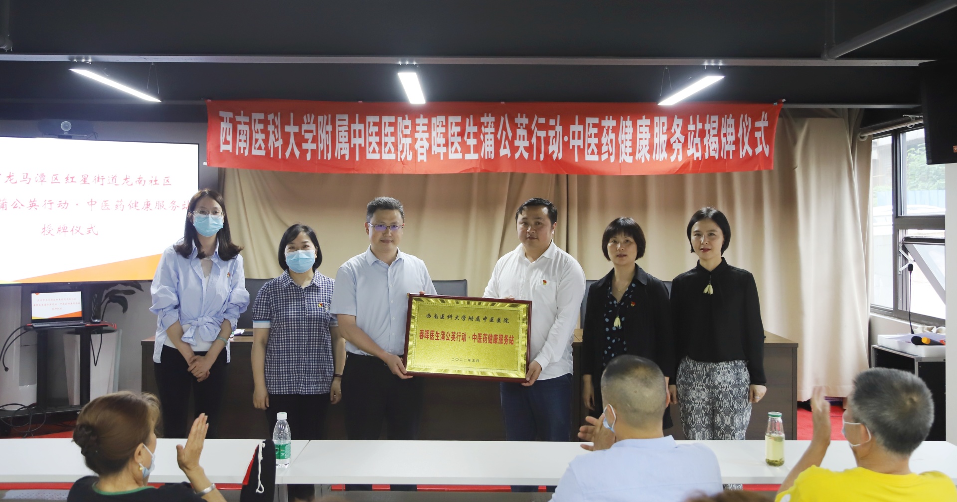 2022年5月26日,我院肝胆病科党支部、继续教育党支部与龙马潭区红星街道龙南社区举行了春晖医生蒲公英行动·中医药健康服务站授牌仪式。医院党委书记李志、龙南社区党委书记李住常及我院肝胆病科党支部、继续教育党支部相关人员等参加了仪式。仪式由龙南社区党委副书记、监委会主任张玉主持。