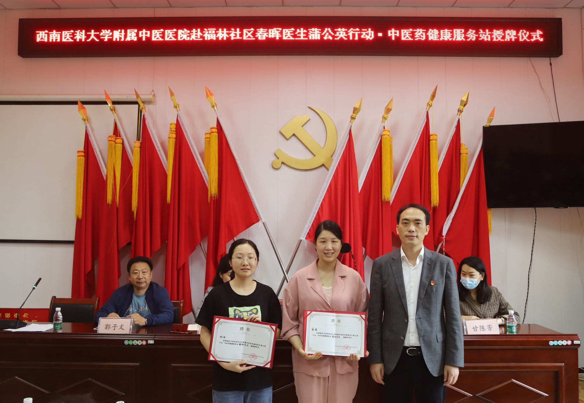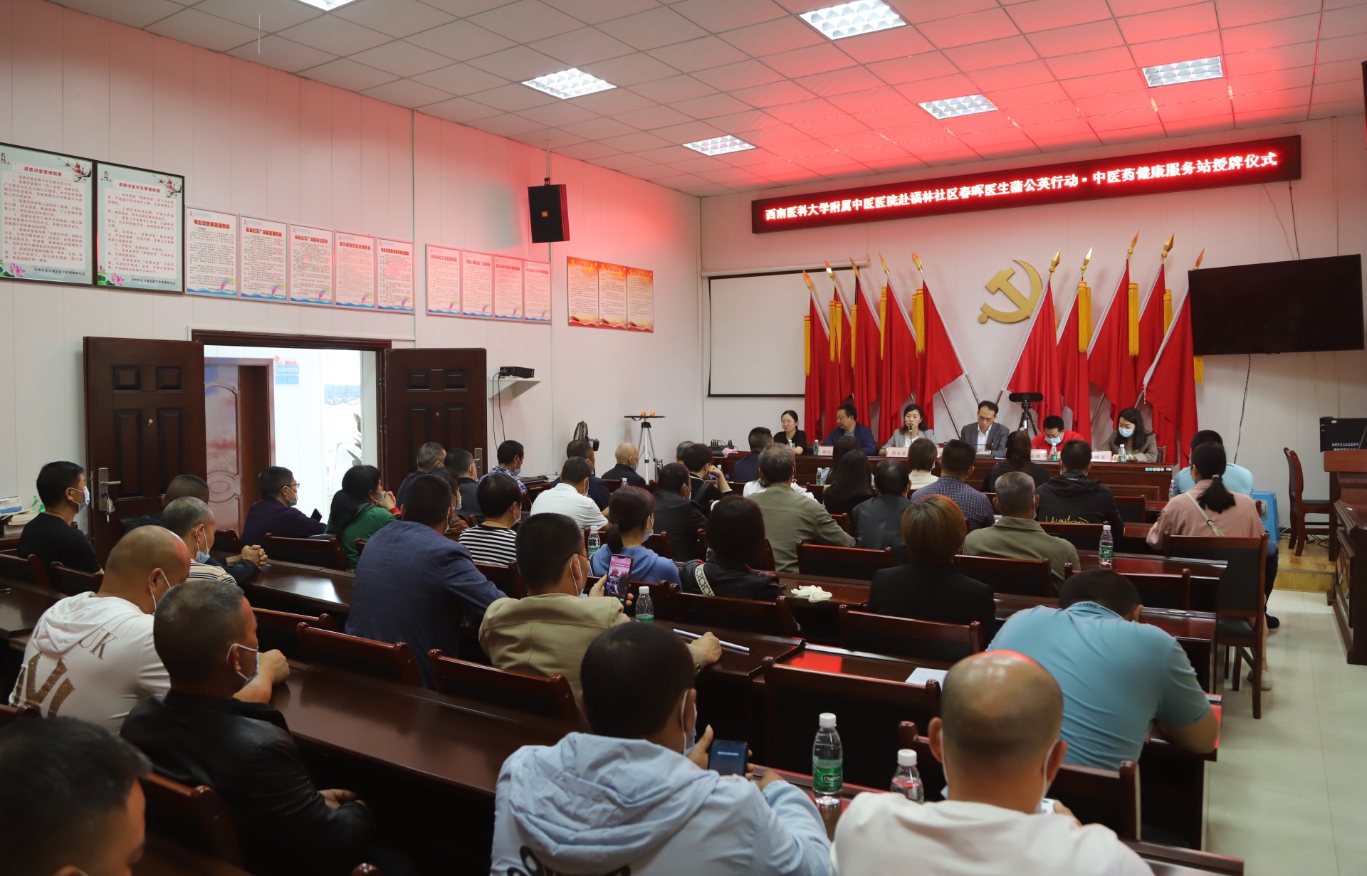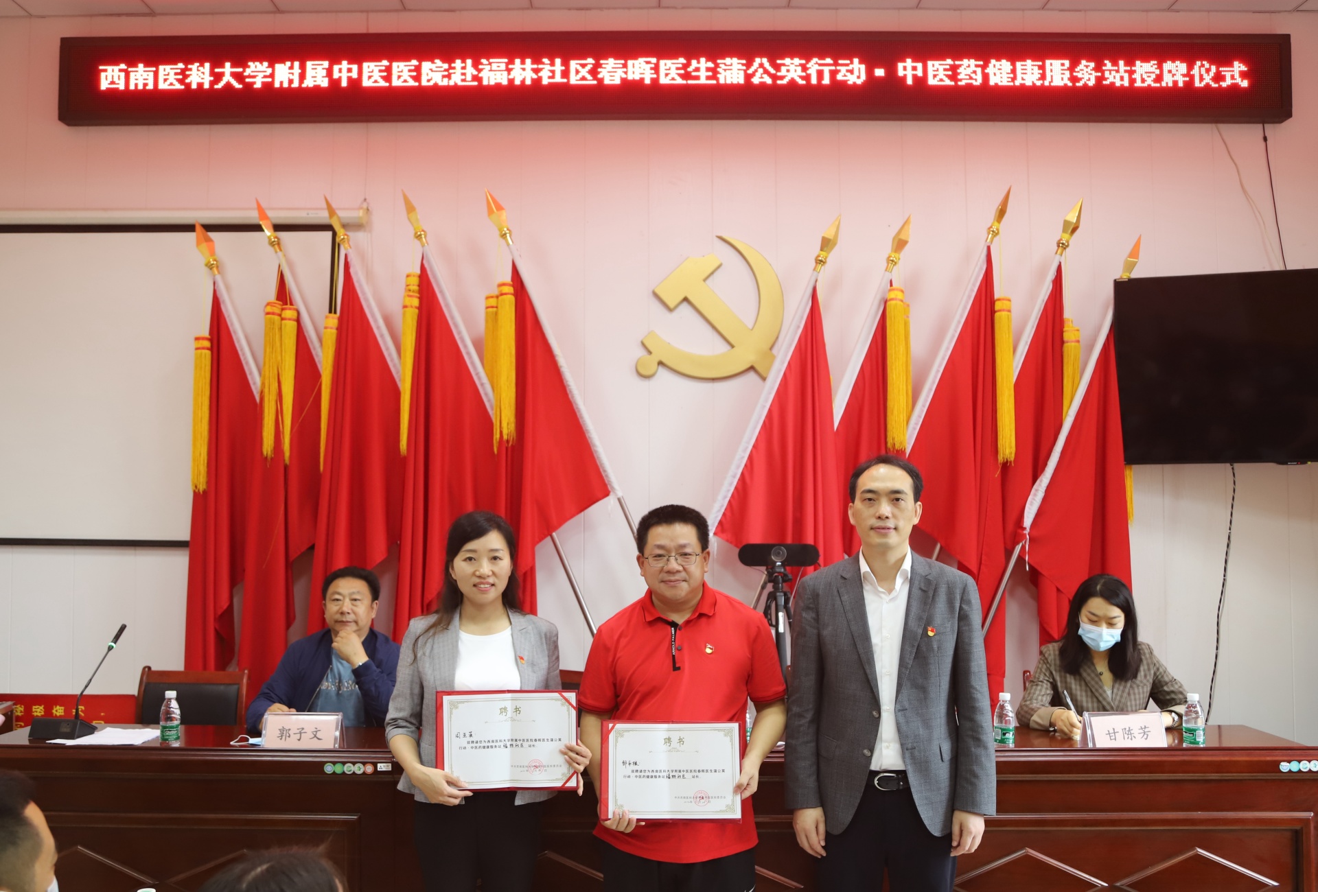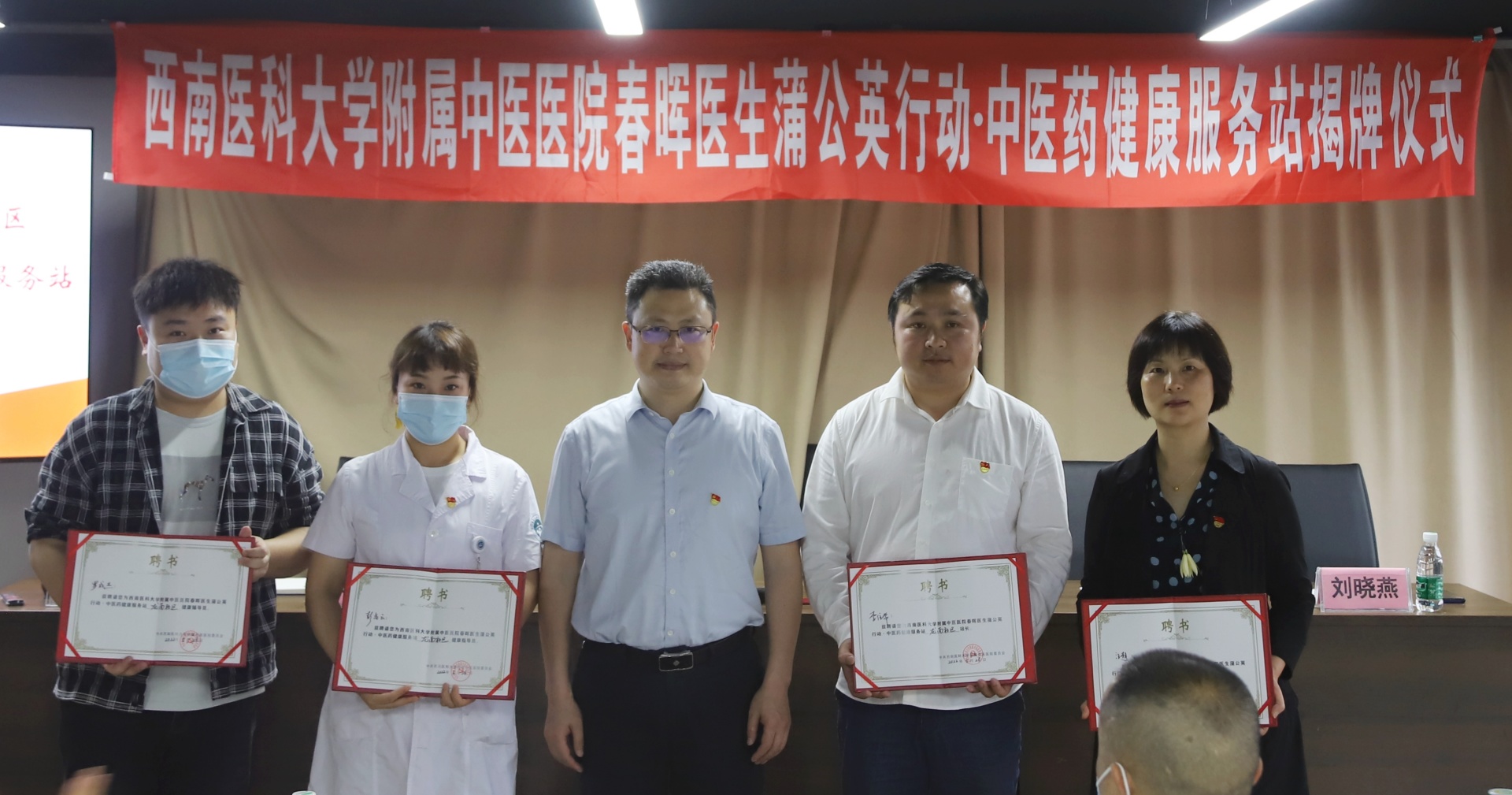 仪式上,李住常介绍了龙南社区基本情况。李志代表医院向龙南社区授予“春晖医生蒲公英行动·中医药健康服务站”牌匾,并向相关人员颁发了服务站站长、健康指导员和健康辅导员聘书。他介绍了春晖医生蒲公英行动·中医药健康服务站建设情况,表示将以此次共建活动为契机,坚持优势互补、共建共享的原则,强化资源整合;以管理信息化、服务专业化、流程标准化、活动常态化、形式多样化、作用最大化“六化”为标准,确保中医药健康服务工作落到实处;充分发挥党支部的战斗堡垒作用及党员的先锋模范作用,进一步下沉优质医疗资源,进一步传播中医药文化,让老百姓信中医、爱中医、用中医,为老百姓的健康服好务,提高人民群众的幸福感和获得感;充分发挥医院在泸州市中医药事业发展中的领头羊作用,为泸州市区域医药健康中心建设和区域中医药高质量发展作出积极贡献。