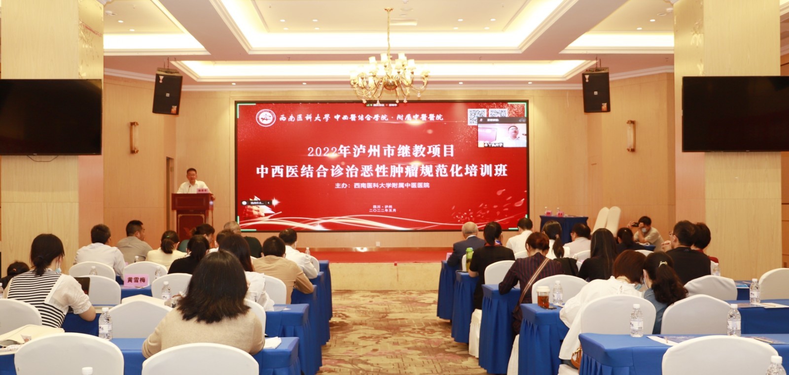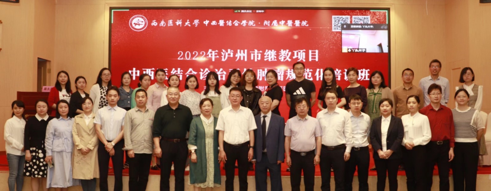 2022年5月28日,我院召开2022 年泸州市继教项目“中西医结合诊治恶性肿瘤规范化诊疗培训班”学术会,本次学术会以线上线下方式召开。我院副院长徐厚平,泸州市中西医结合学会肿瘤专委会主任委员、肿瘤·血液病科(忠山院区)学科主任廖大忠,省内外从事肿瘤防治领域相关专家等参加了开幕式,开幕式由廖大忠主持。
