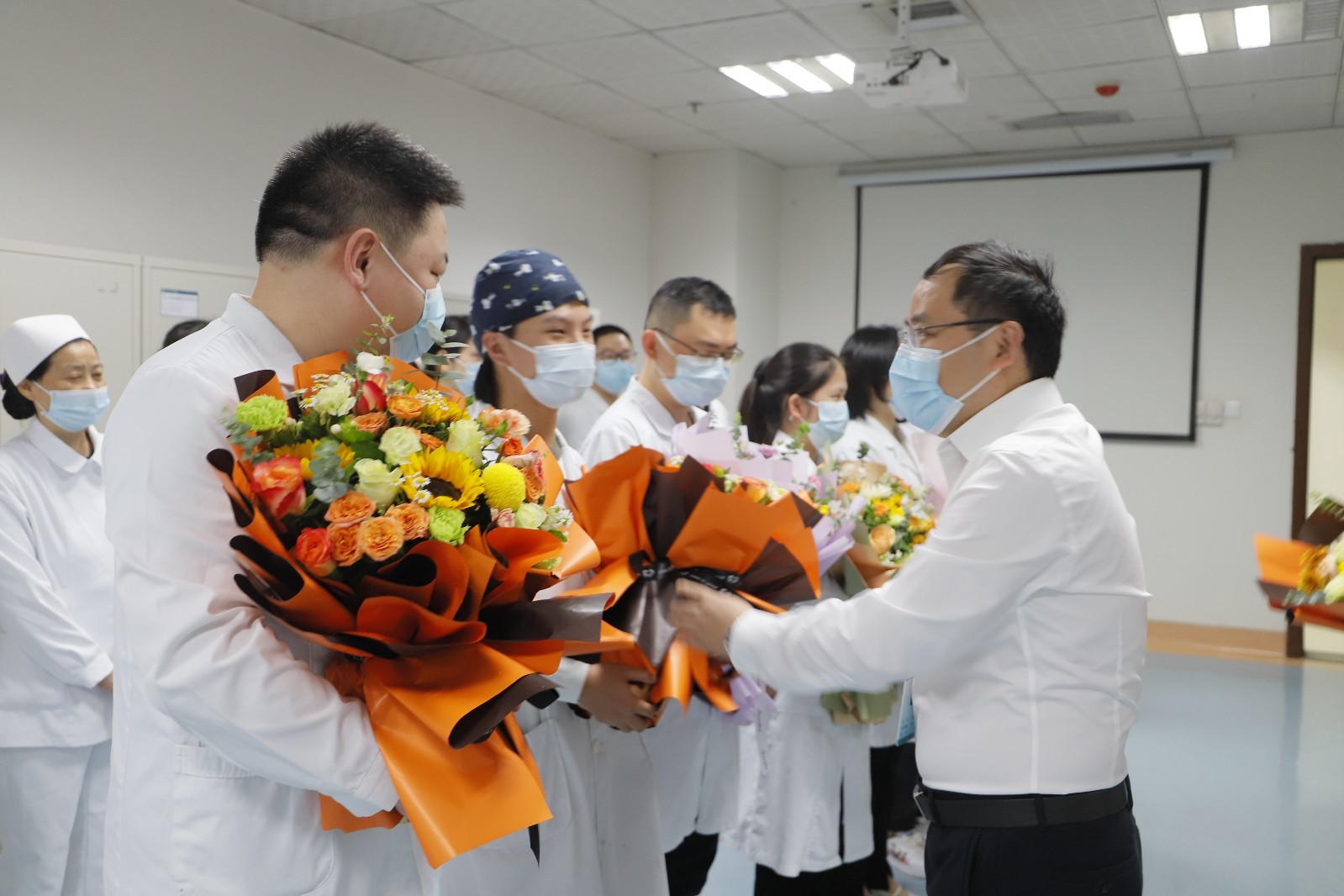 会上,与会领导对3名援吉核酸检测应急队队员不辱使命、圆满完成任务给予了充分肯定,并向检验科派往北京、云南、河南、吉林等地支援的8名核酸检测应急队队员赠送了鲜花。