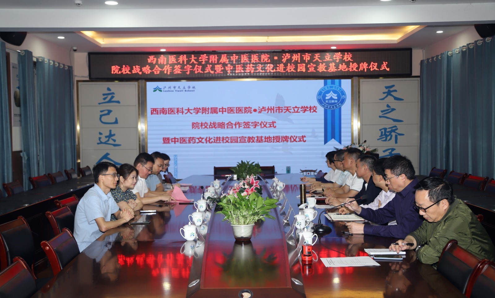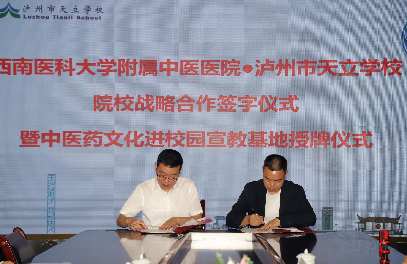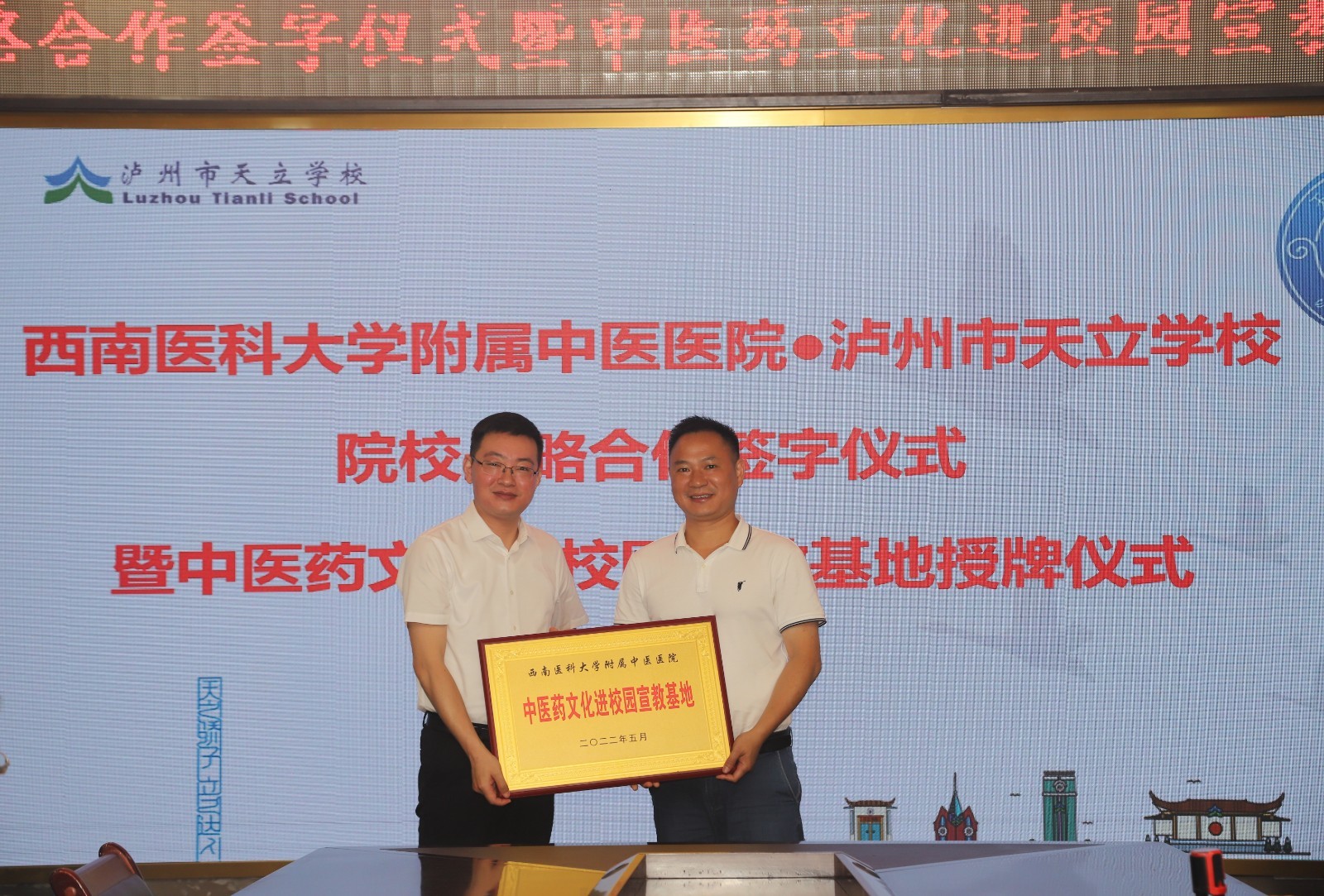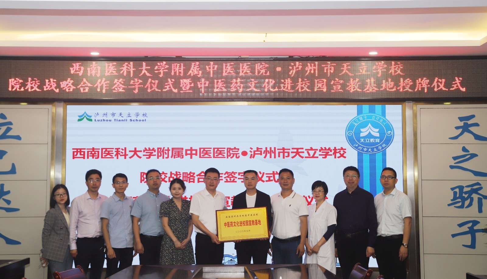 2022年5月11日,我院与泸州市天立学校举行院校战略合作签约暨中医药文化进校园宣教基地授牌仪式。我院副院长徐厚平,泸州市天立学校泸州学区校长陈光明、高中校长邱刚及我院相关职能部门人员等参加了会议。会议由泸州市天立学校副校长姜勇主持。