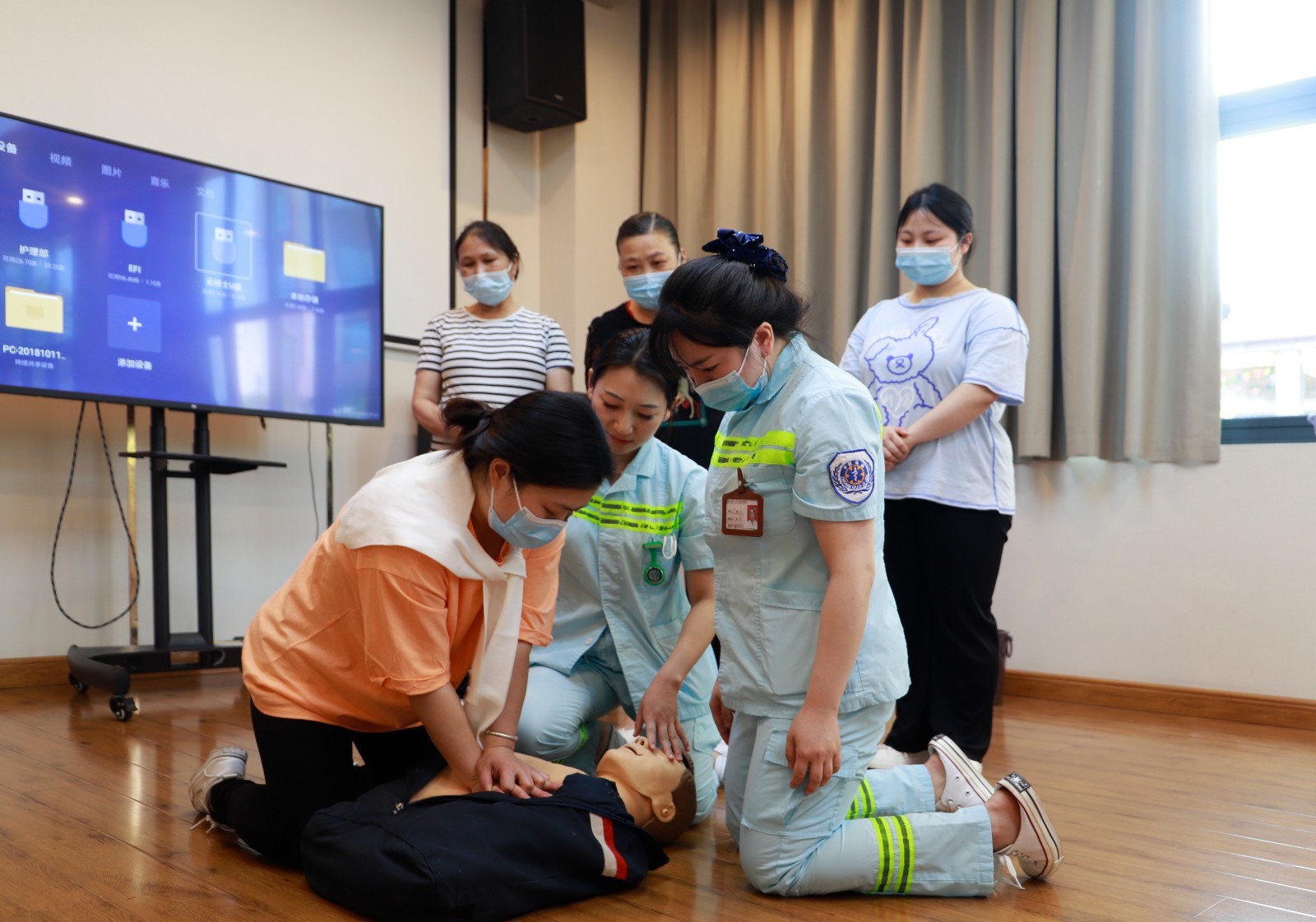 护理部部长李素莲为养老社区护理员作了《老年生活护理》专题培训讲座;水井沟急诊科组织开展了心肺复苏、海姆立克急救法指导;医院感染管理办公室组织开展了手卫生培训。