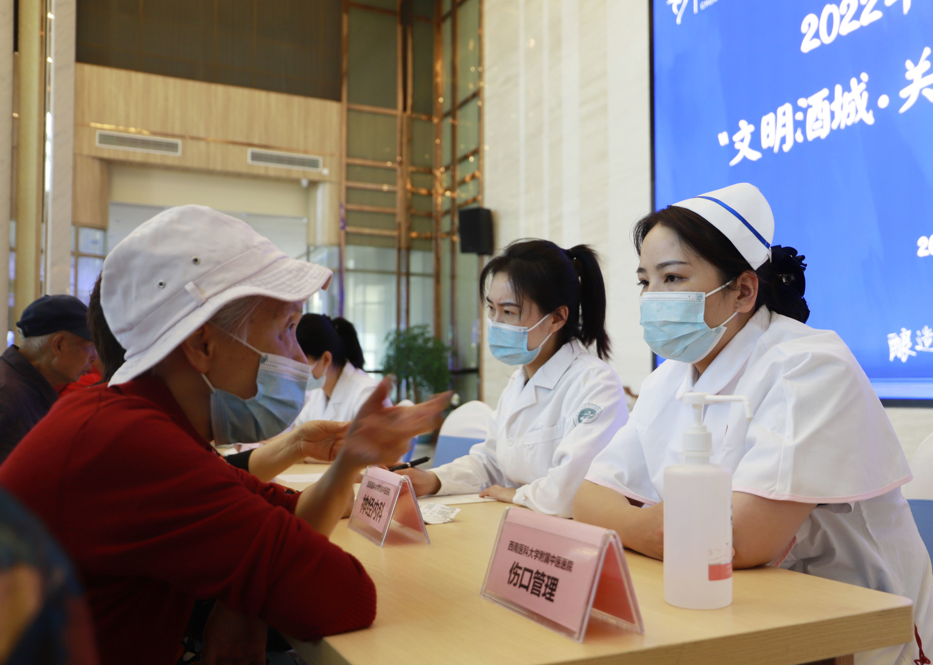 2022年5月7日,我院护理部联合农工党泸州市委、医院感染管理办公室、老年病科、神经内科、骨伤科、呼吸内科、肾病科、肛肠科等相关临床科室及中医体质辨识门诊、中医特色诊疗中心在泸州市春江酒城嘉苑养老社区开展了“情系夕阳红·护理暖人心”5·12国际护士节义诊活动。