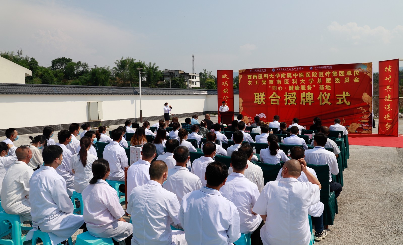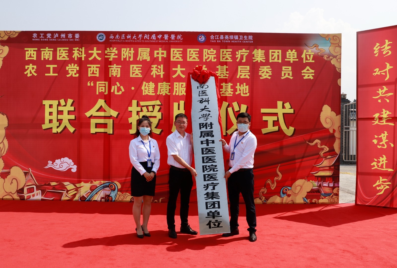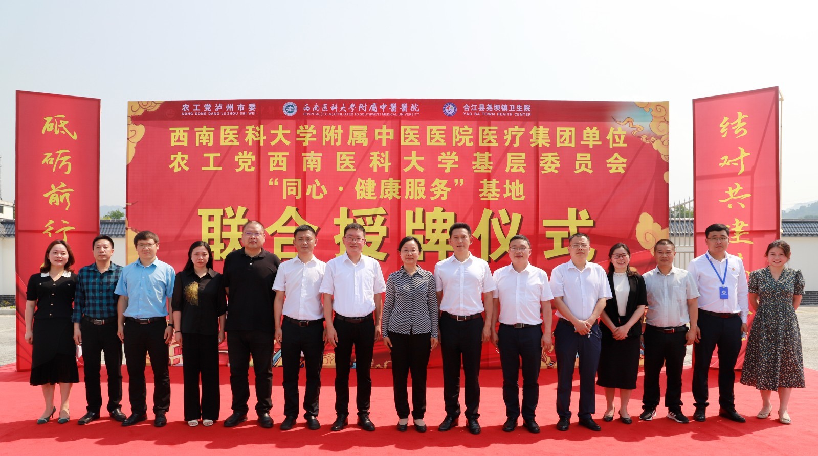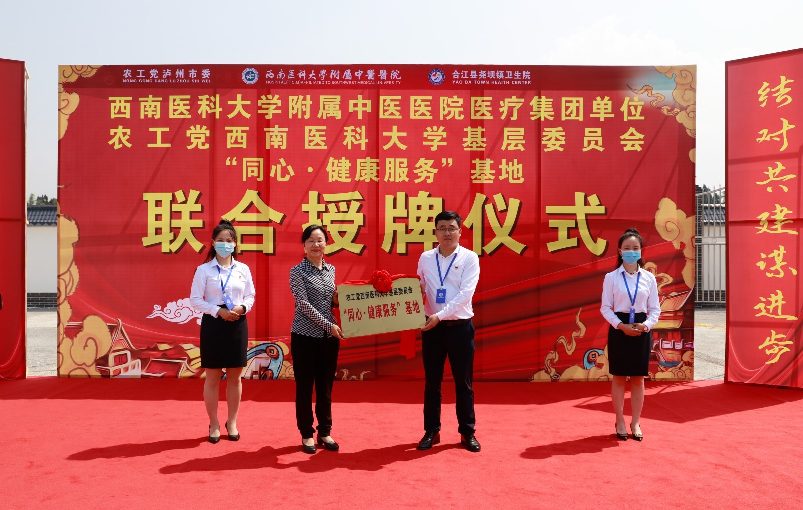 2022年5月7日,我院与合江县尧坝镇卫生院举行授牌仪式。市政协副主席、农工党泸州市委会主委唐敏,农工党泸州市委秘书长刘天明, 农工党泸州市委委员、西南医科大学基层委员会主委游向宇,我院副院长徐厚平等领导及农工党党派人员等参加了仪式。