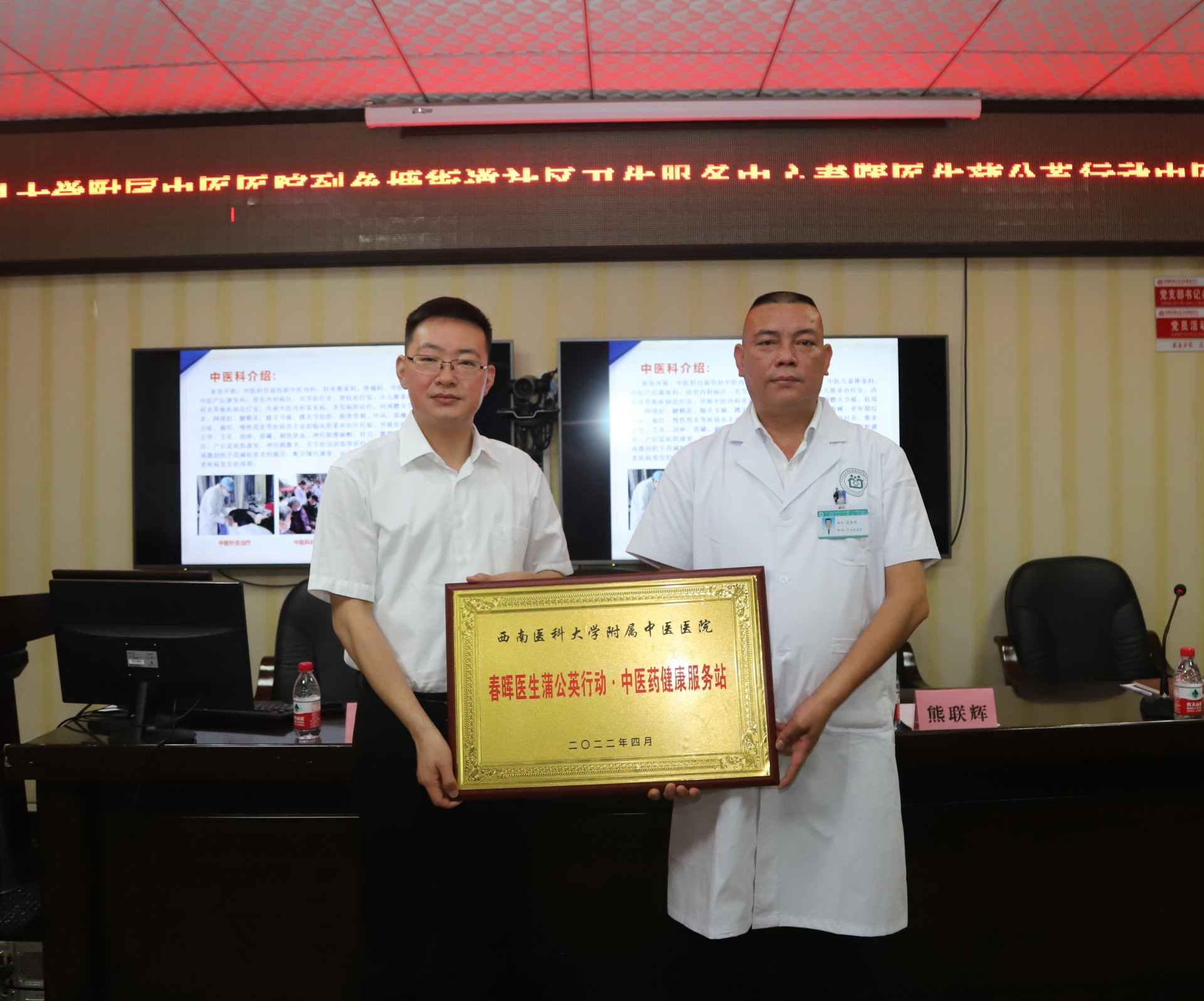 2022年4月29日,我院肛肠科党支部与龙马潭区鱼塘街道社区卫生服务中心举行了春晖医生蒲公英行动·中医药健康服务站授牌仪式,我院副院长徐厚平,鱼塘街道社区卫生服务中心副主任熊联辉及相关临床科室医护人员等参加了仪式。