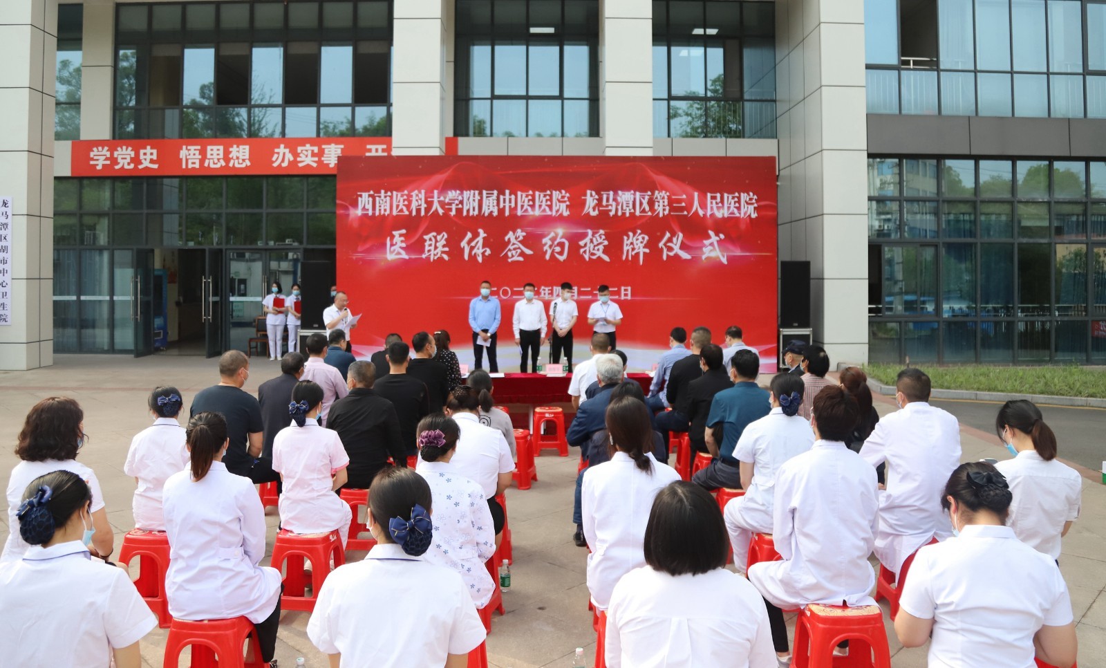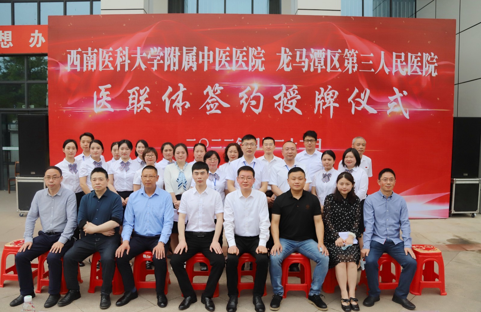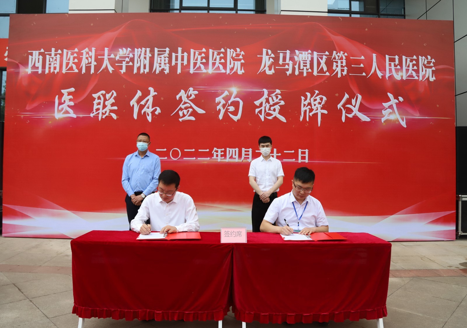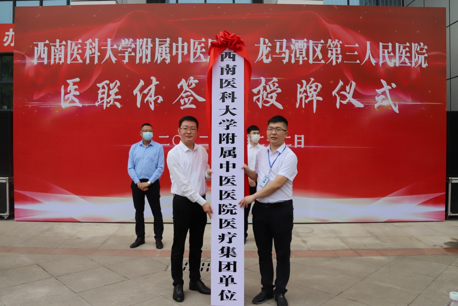 仪式上,徐厚平代表医院与龙马潭区第三人民医院院长刘昌勇签订了《医疗联合体协议书》,并向该院授予“西南医科大学附属中医医院医疗集团单位”牌匾。