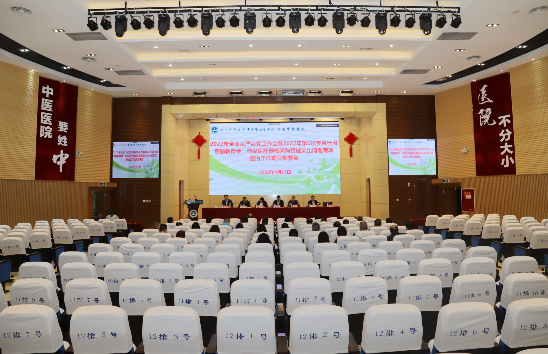 党委书记李志讲话,他总结了2021年全面从严治党工作的成绩和不足,强调了2022年全面从严治党工作的重点和要点,同时对药品医疗器械采购领域突出问题专项整治工作进行了动员部署。他要求与会人员要加强政治建设,提高政治能力;要加强思想建设,强化宣传引导;要加强组织建设,夯实基层党建;要突出政治标准,建设过硬干部人才队伍;要加强纪律建设,压实“两个责任”;要凝聚各方力量,共创和谐医院,用全面从严的伟力,激发跨越发展的动力,为深入落实“126”发展战略,实施“十四五”规划,推进高质量发展,建设国内一流、国际知名的中医、中西医结合现代化研究型医院而努力奋斗。