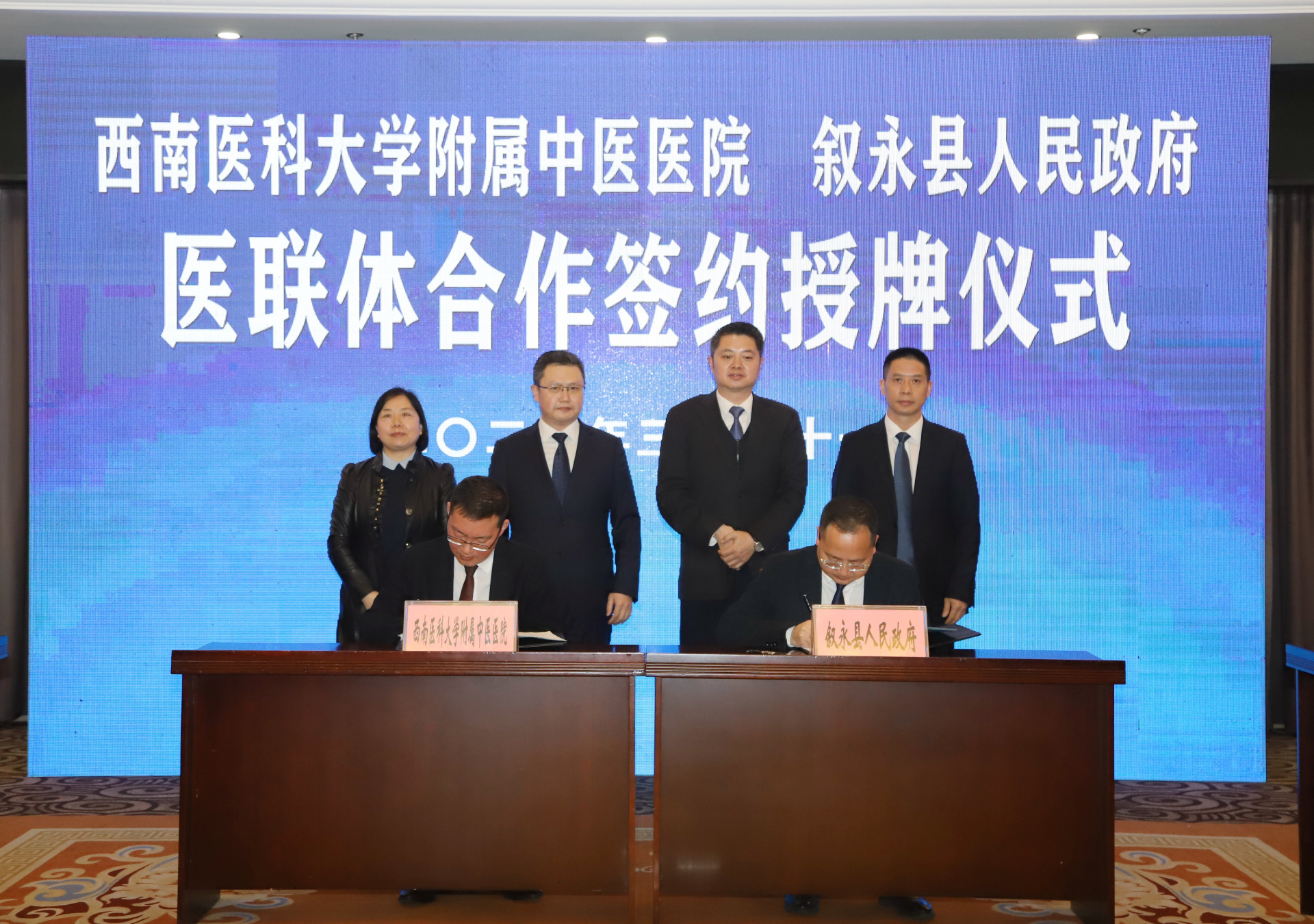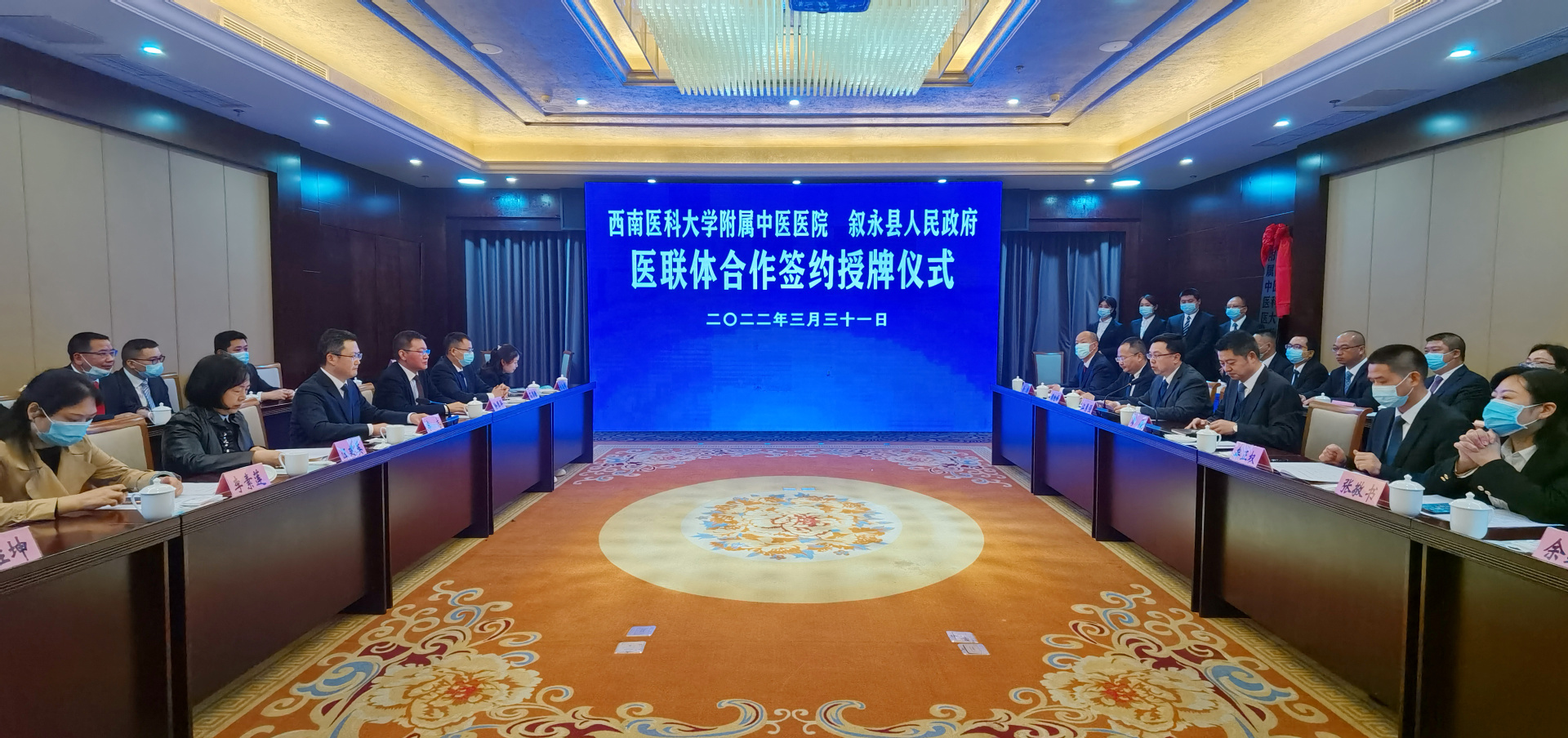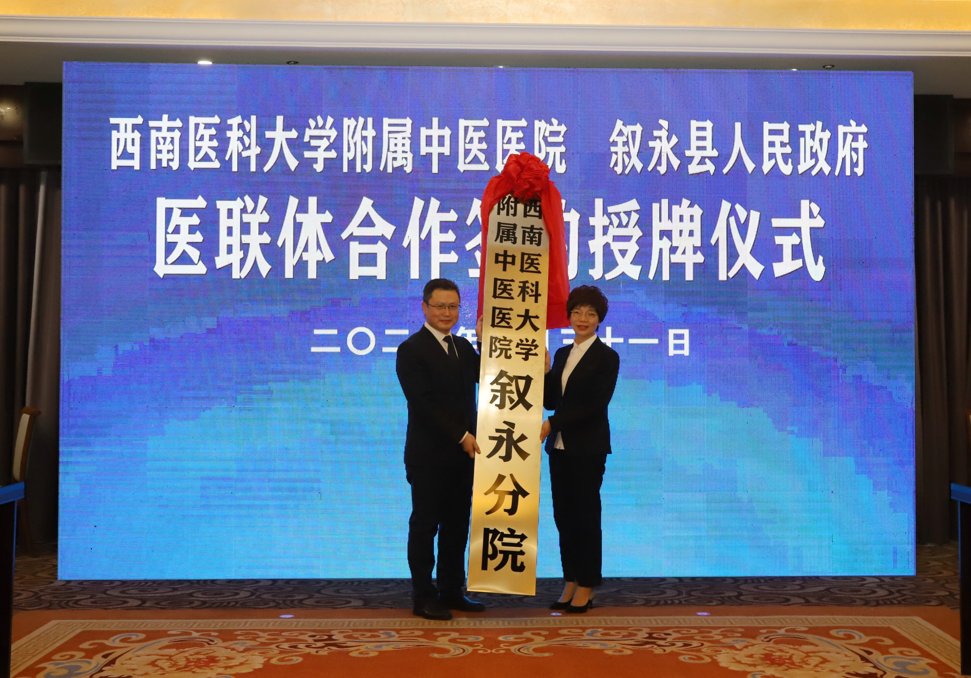 2022年3月31日,叙永县人民政府与我院医疗联合体合作签约授牌仪式在叙永举行。叙永县委书记廖俊,县政协党组书记、主席牟正权,我院党委书记李志、副院长徐厚平等参加了仪式。仪式由叙永县委副书记江勇强主持。