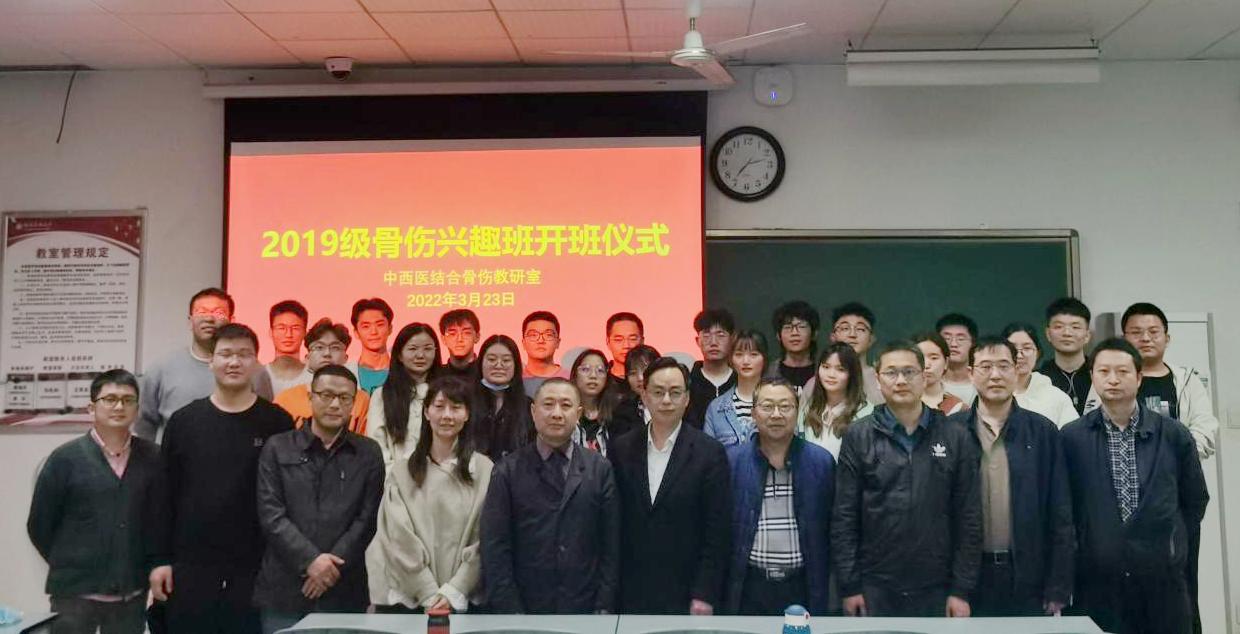 2022年3月23日,我院举行2019级骨伤兴趣班开班仪式,党委副书记雷学举,中西医结合骨伤科教研室主任徐祖健、骨伤兴趣班教学团队全体教师及2019级中医学、中西医临床医学专业21名本科生参加了仪式。