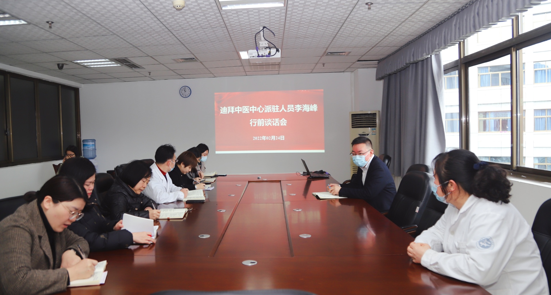 2022年2月24日,我院召开迪拜中医中心派驻人员行前谈话会,副院长徐厚平、派驻人员针灸·推拿·康复科李海峰、相关职能部门及科室负责人参加了会议。会议由徐厚平主持。