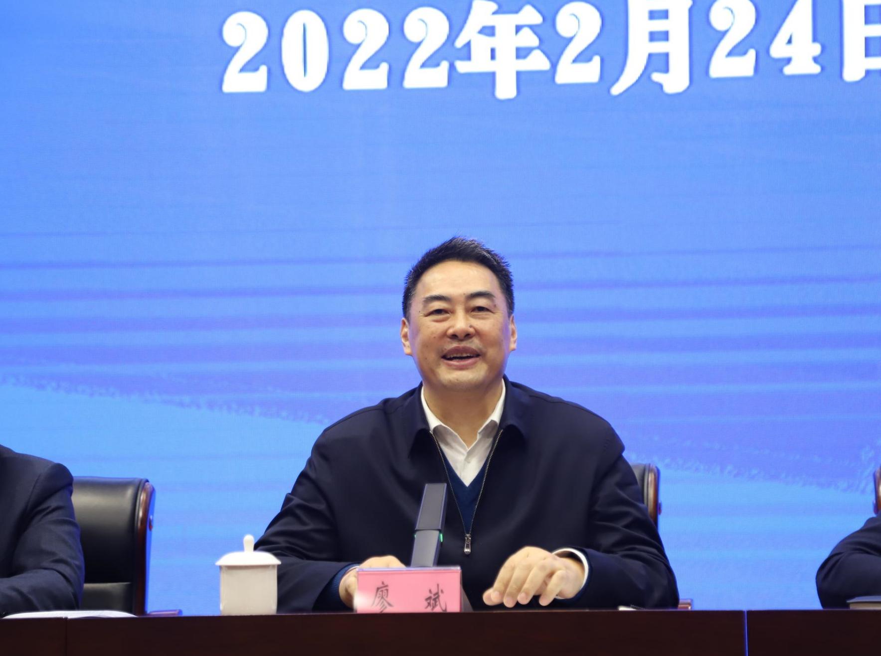 廖斌讲话,他介绍了西南医科大学发展概况和两所附属医院的基本情况,希望双方本着资源共享、优势互补、合作共赢、平等自愿的原则,践行以人民为中心的发展理念,不断提升医疗卫生服务水平和能力,为群众健康保驾护航。