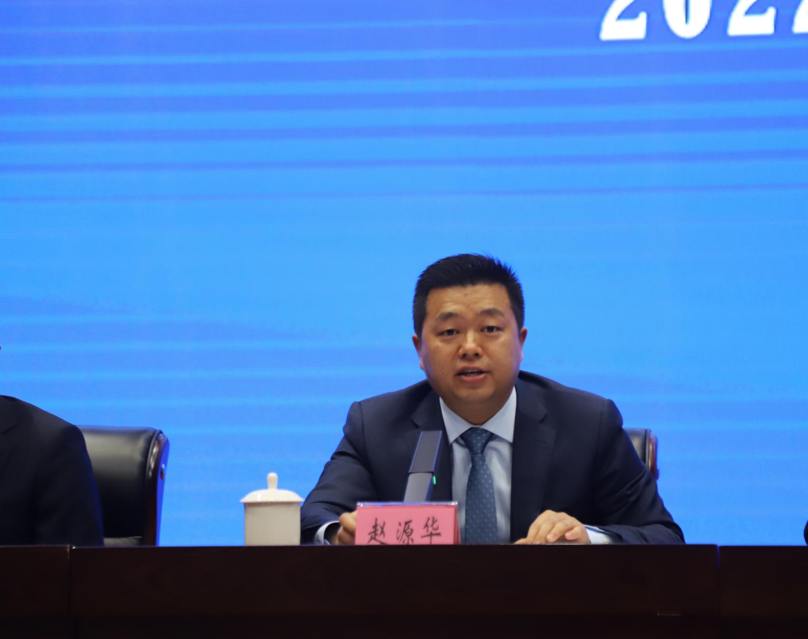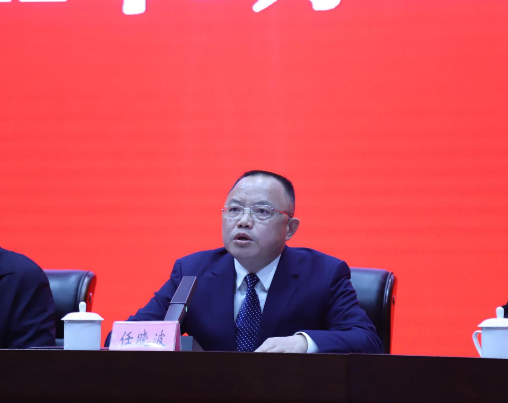 任晓波致辞,他介绍了古蔺县发展概况和卫生事业的基本情况,希望西南医科大学及其附属医院充分发挥专业优势、技术优势、资源优势、平台优势,在医疗产业、医疗技术、医疗工作、医养结合等方面给予帮助和支持。