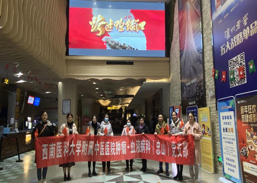 1月10日,肿瘤·血液病科(忠山)党支部组织党员同志观看了爱国主义教育影片《跨过鸭绿江》。