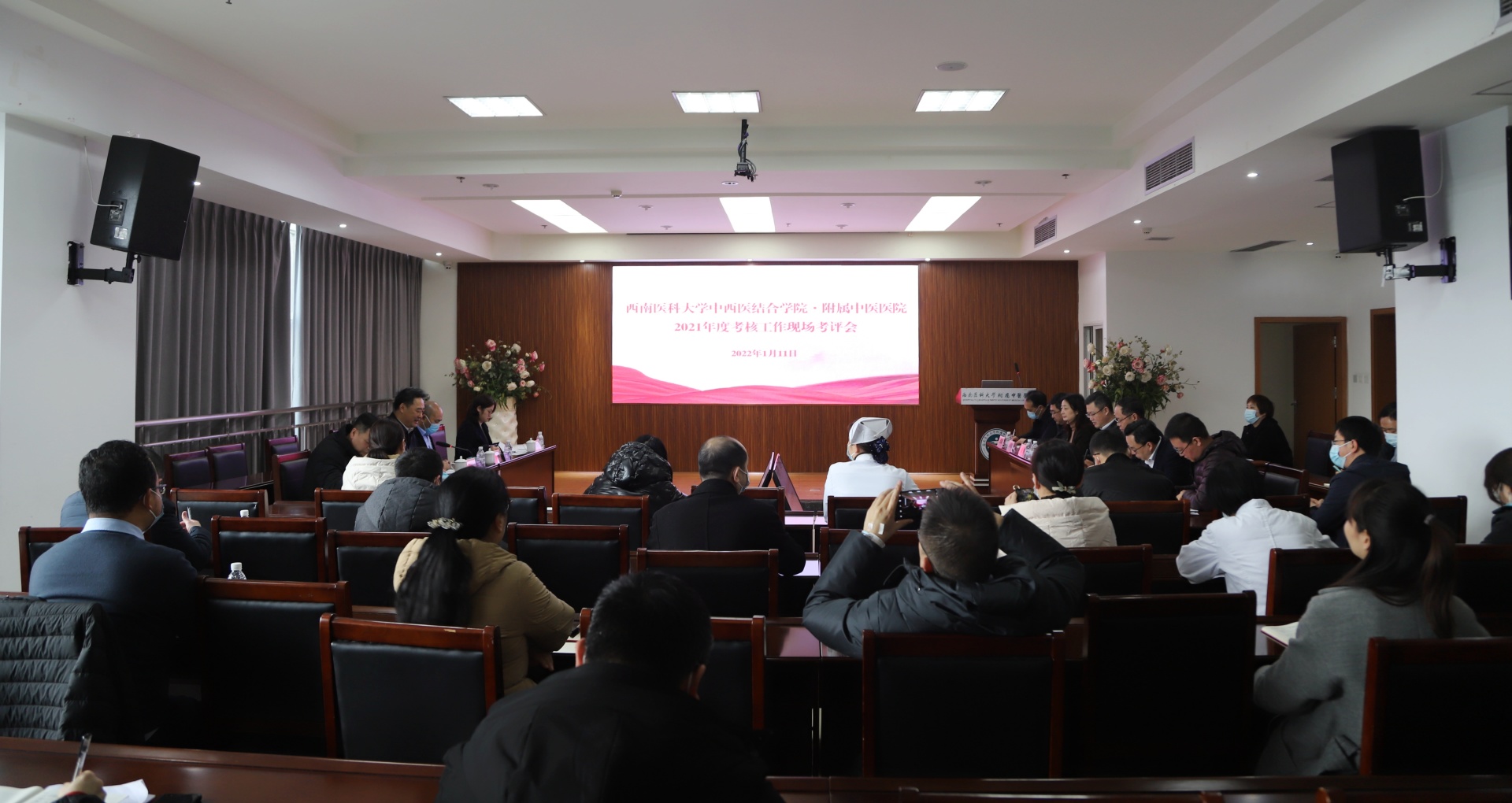 2022年1月11日,西南医科大学2021年度考核工作对我院的现场考评会议在我院顺利召开,学校第一考评小组组长、党委书记廖斌,党委常委、组织部部长冯天明,党委教师工作部·人事处处长刘文胜,组织部综合科科长、党校办公室主任裴傲秋莅临会议检查考评,医院全体处级领导干部,科级干部、党支部书记、教研室、实验室负责人、正高职称人员、民主党派负责人、教代会、工代会等代表参加了考评会,会议由廖斌同志主持。