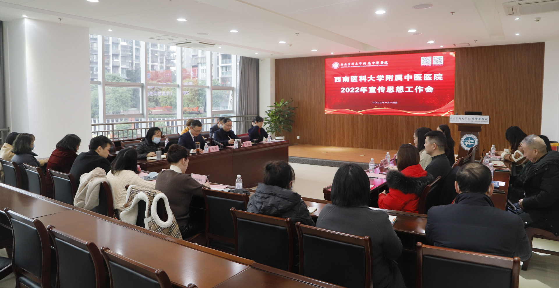 2022年1月14日,我院召开2022年宣传思想工作会。医院党委书记李志、院长刘建、相关职能部门人员,各级各类媒体记者代表,医院临床科室医护人员代表等30余人参加了会议。会议由李志主持。
