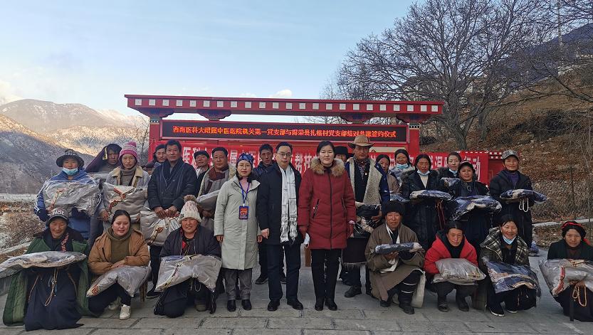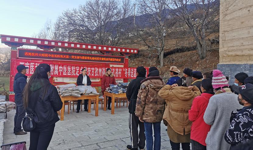 雷学举代表医院向村民发放了医院捐购的衣物,感谢得荣县及当地村民对我院驻村帮扶队员的支持和帮助,并表示医院将以此次党支部结对共建为契机,充分发挥我院中医药特色优势,进一步加强产业帮扶,探索中药材种植项目,扎实推进扎格村乡村振兴工作。