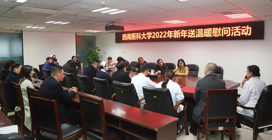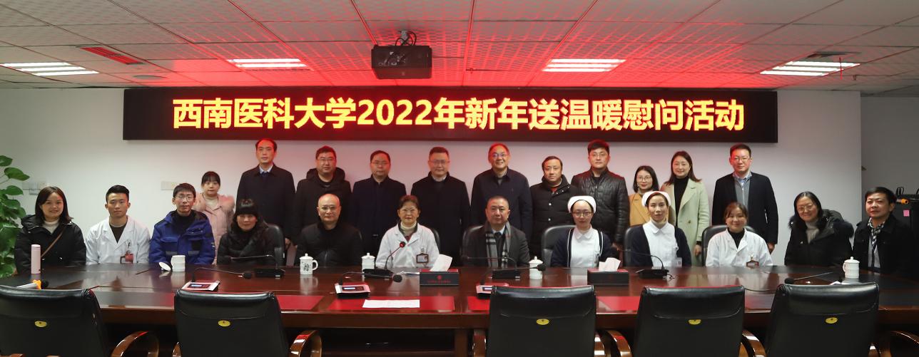 2021年12月31日,西南医科大学党委副书记、纪委书记李尚志一行来院开展2022年新年送温暖慰问活动,医院党委书记李志、院长刘建等领导以及“抗疫”一线代表、市劳动模范、高层次人才、困难党员等受慰问人员共计17人参加了本次会议。