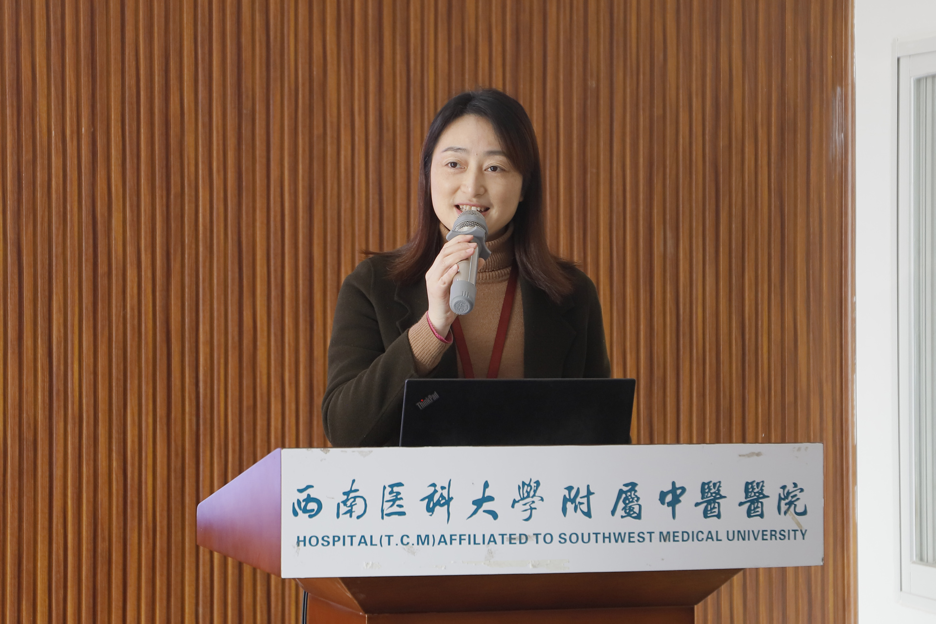 徐茜致辞,她代表医院对泸州市诗词学会领导一行的到来表示热烈欢迎,并从医疗、教学、科研、对外交流、文化建设、社会服务及管理工作等方面介绍了医院基本情况。