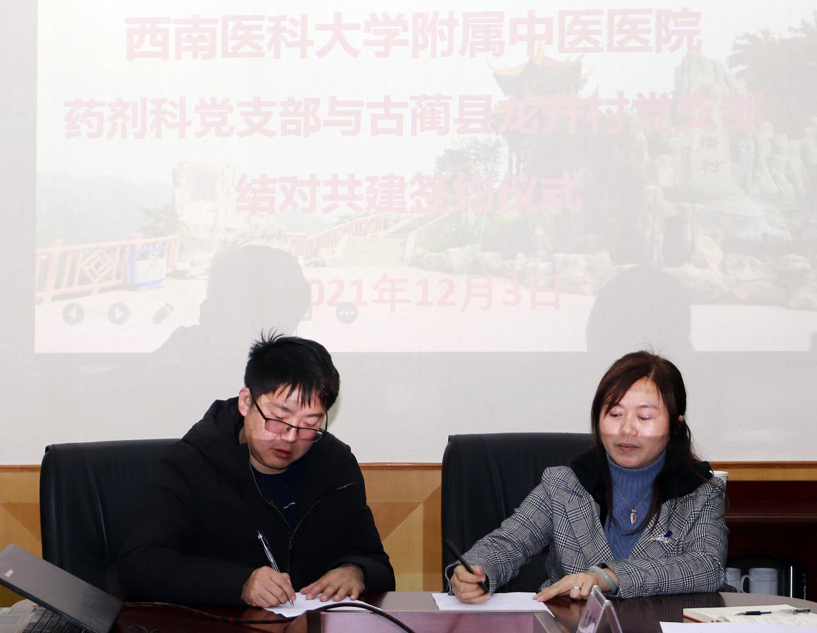 随后,我院药剂科支部与龙升村支部相关人员签订了党支部结对共建协议。