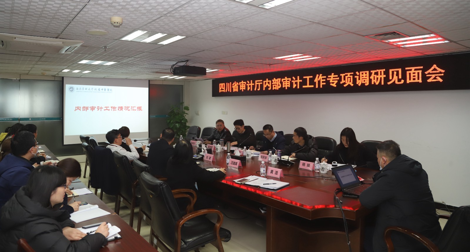 2021年12月6-9日,四川省审计厅内部审计监督指导处副处长马跃明、董华及四川省中医药管理局、四川省疾病预防控制中心等领导一行5人莅临我院开展内部审计专项调研工作。