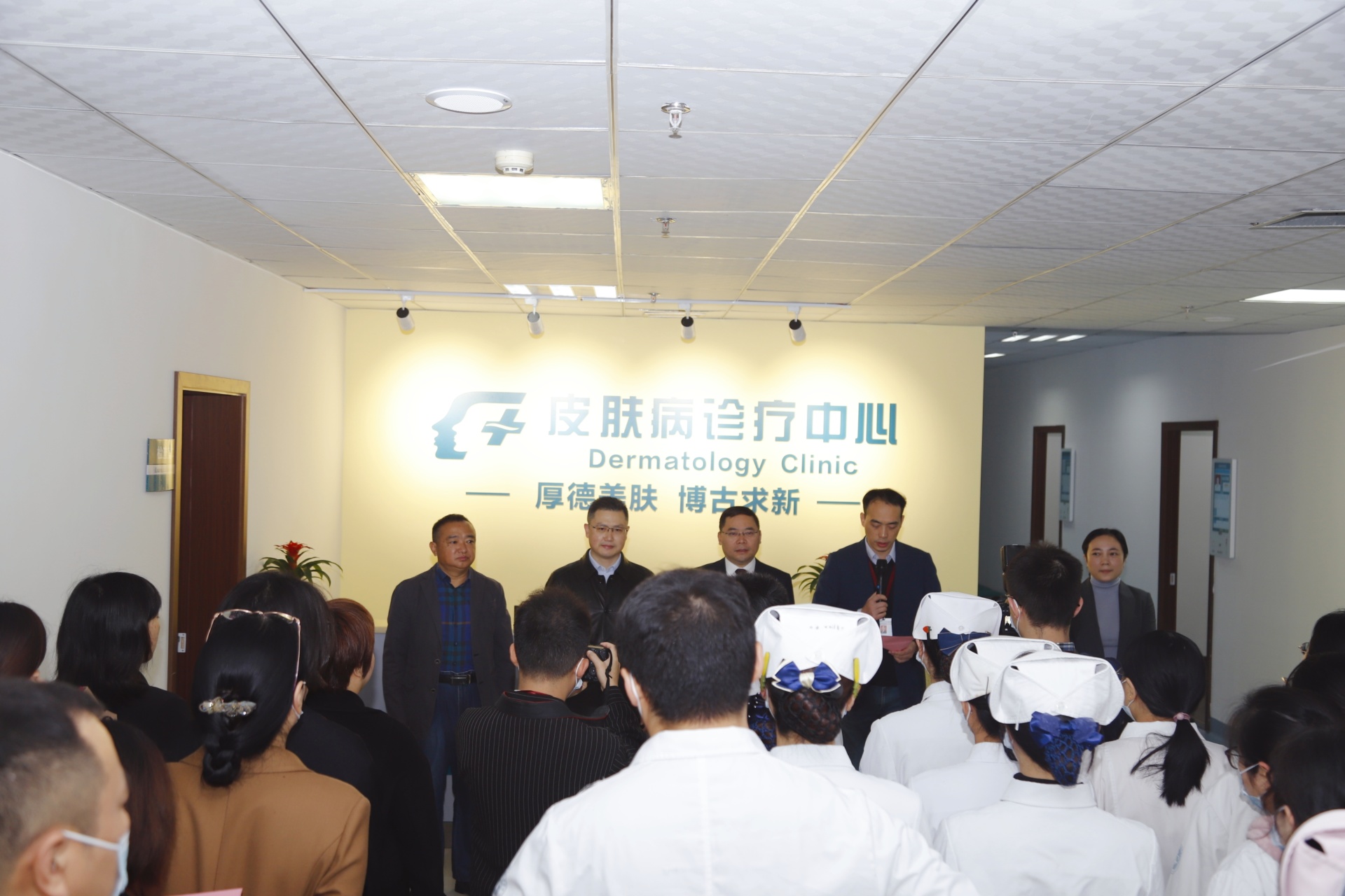 随后,刘建宣布“皮肤病诊疗中心”开诊。与会领导及相关人员为“皮肤病诊疗中心”开诊剪彩。