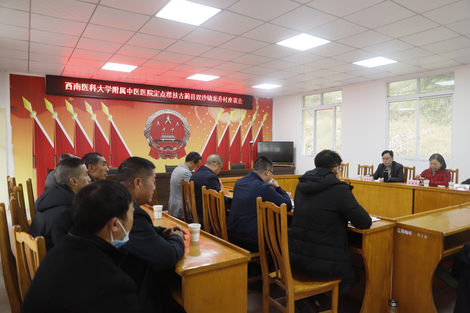双沙镇党委书记严涛讲话,他介绍了双沙镇的基本情况后,感谢我院在龙升村开展的相关乡村振兴工作,希望今后在中药材种植、乡村医疗卫生发展等方面能继续得到我院的指导和帮扶。