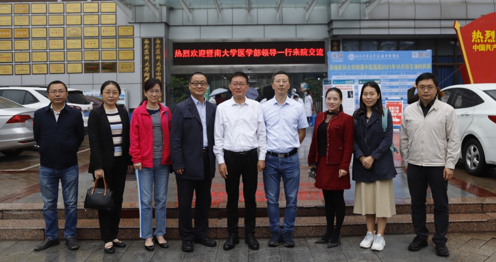2021年10月12日,暨南大学医学部党工委副书记、行政副主任孟宪军一行来我院参观交流。来宾们在西南医科大学研究生学院副院长江玉和我院副院长徐厚平陪同下参观了我院门诊大厅、特需门诊等地。