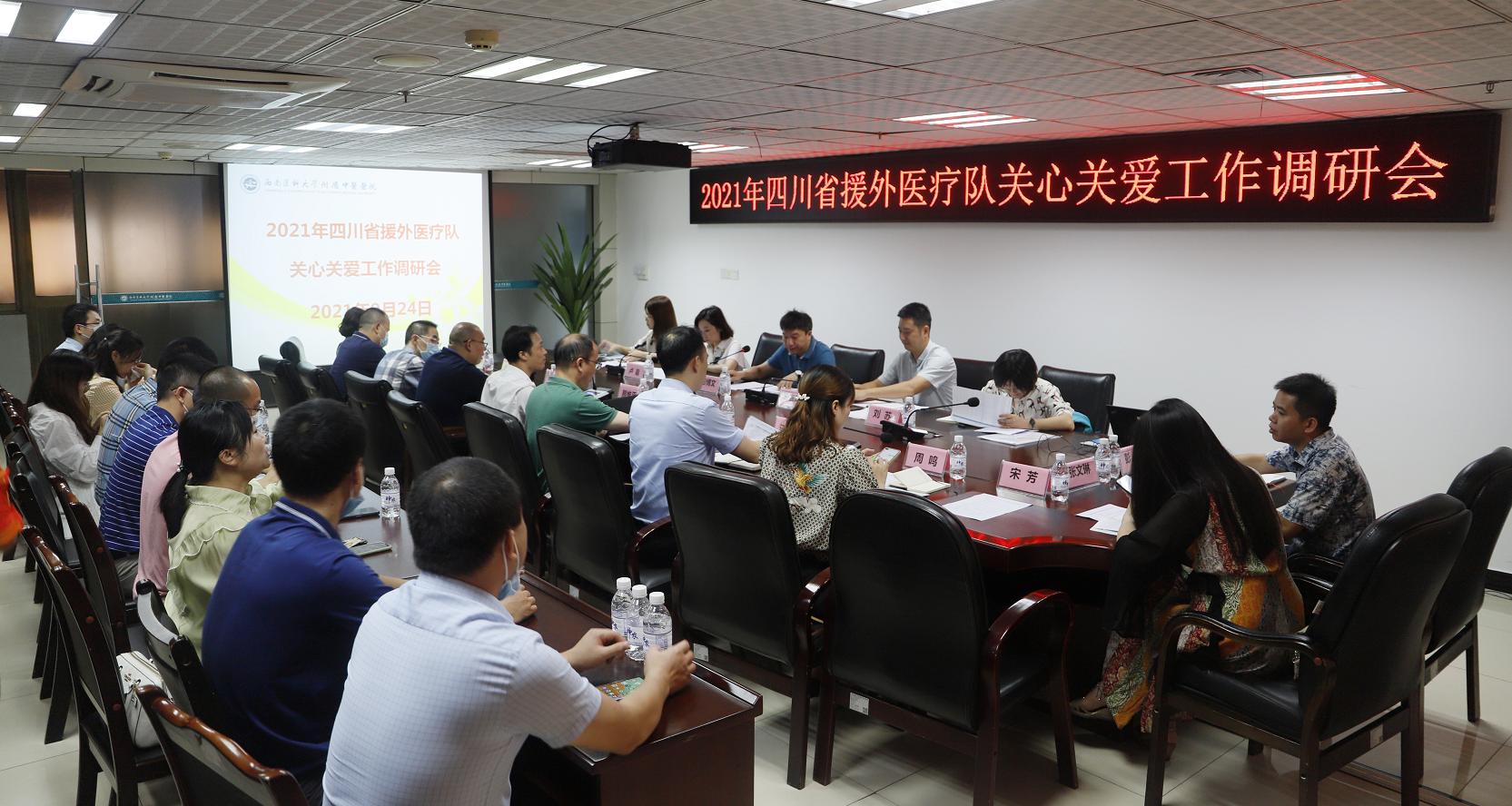 2021年9月24日,四川省卫生健康委国合处处长、省卫生健康委国际交流中心负责人彭博文一行来院开展援外医疗队员关心关爱工作调研及慰问活动。我院副院长汪国友及近期回国援外队员、援外队员家属代表等参加了会议。