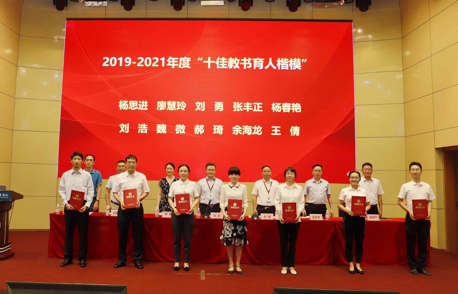 2019-2021年“十佳教书育人楷模”:廖慧玲、刘勇、张丰正、杨春艳、刘浩、魏微、郝琦、余海龙、王倩