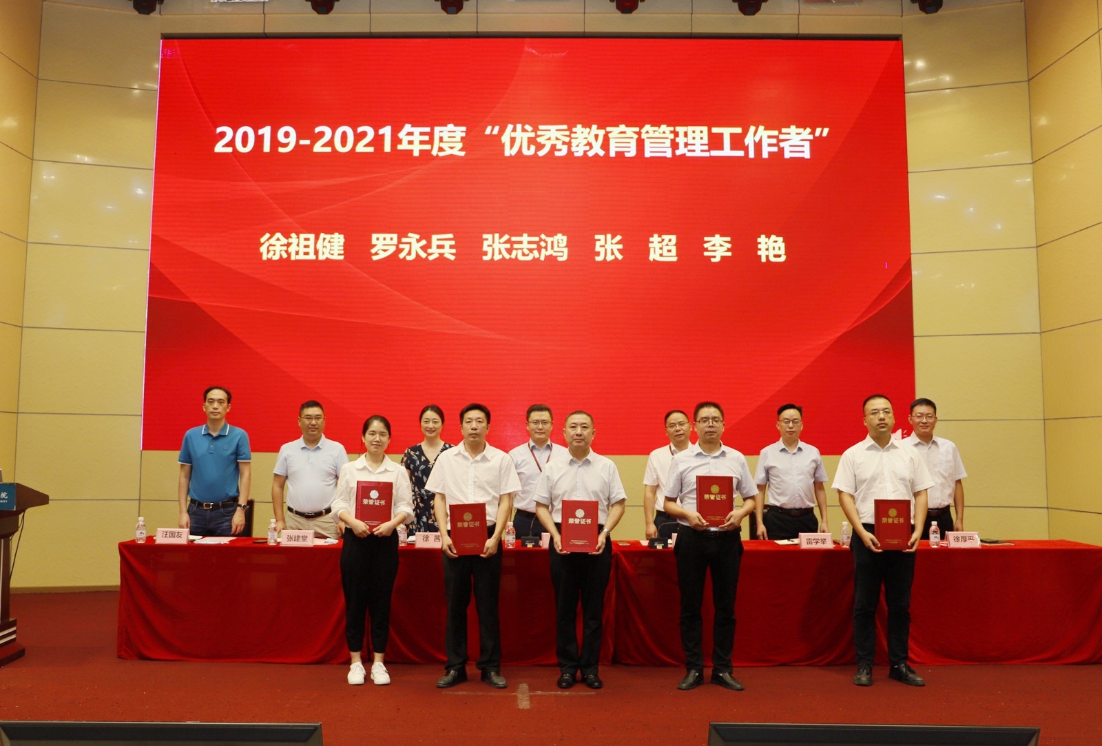 2019-2021年“优秀教育管理工作者”:徐祖健、罗永兵、张志鸿、张超、李艳